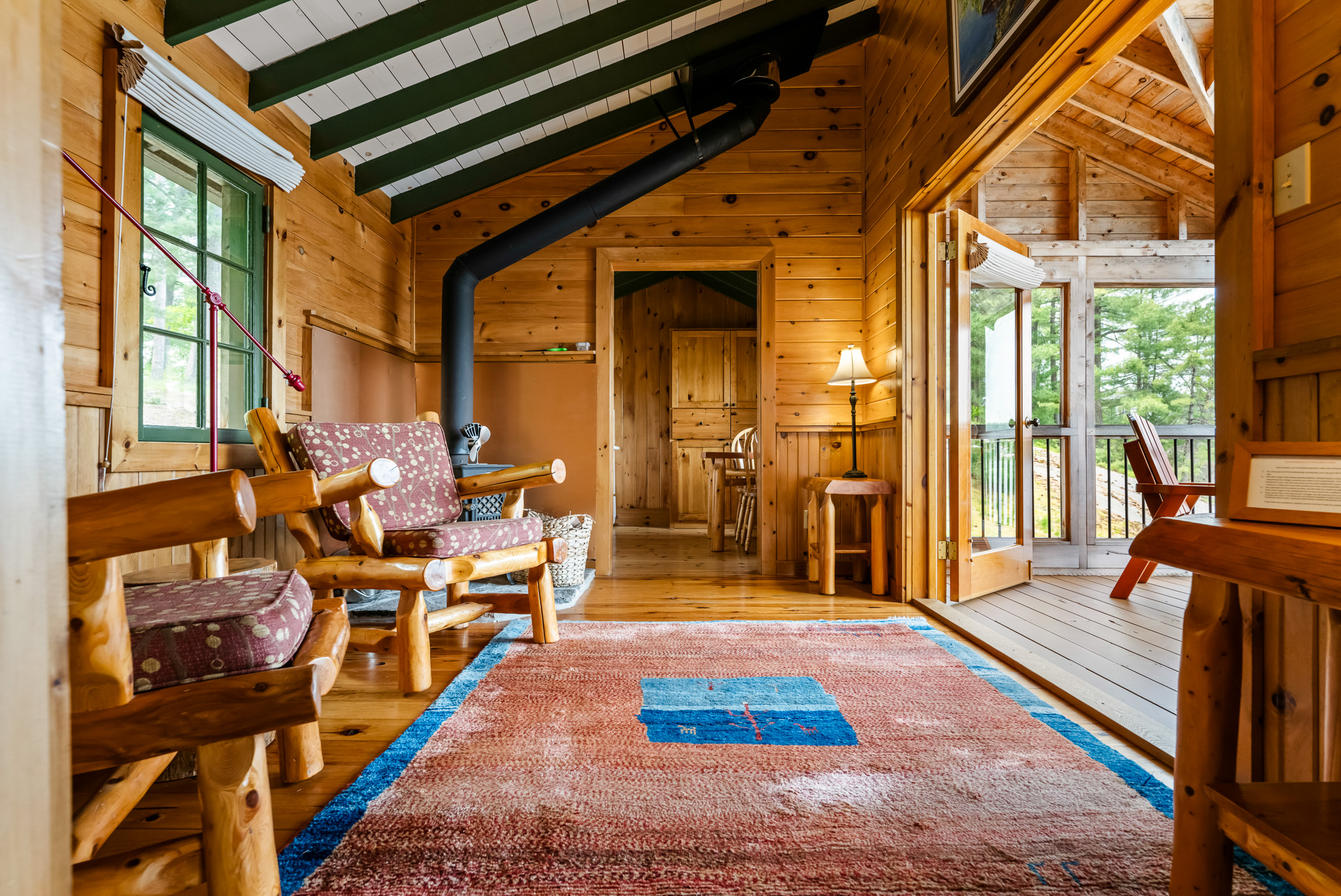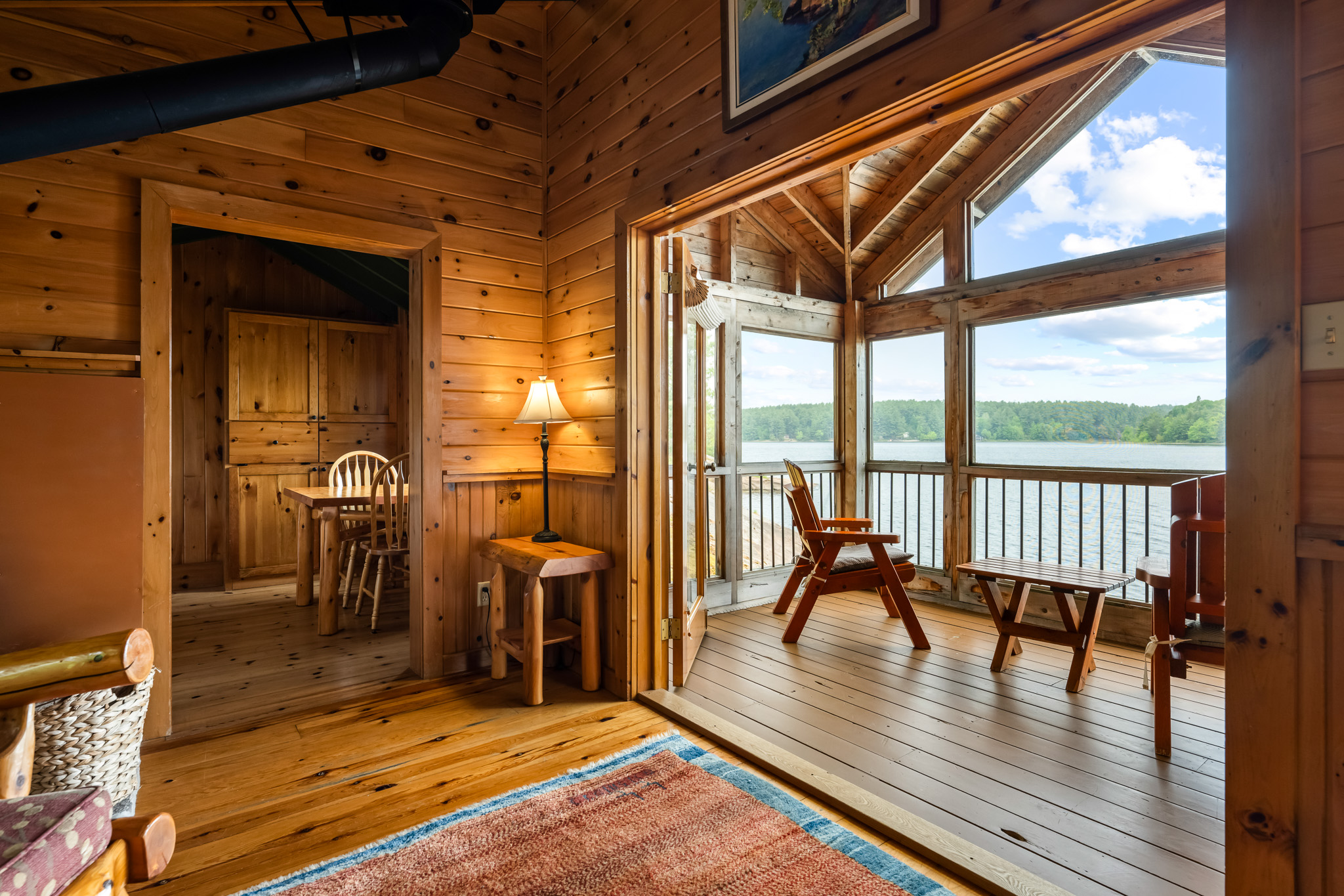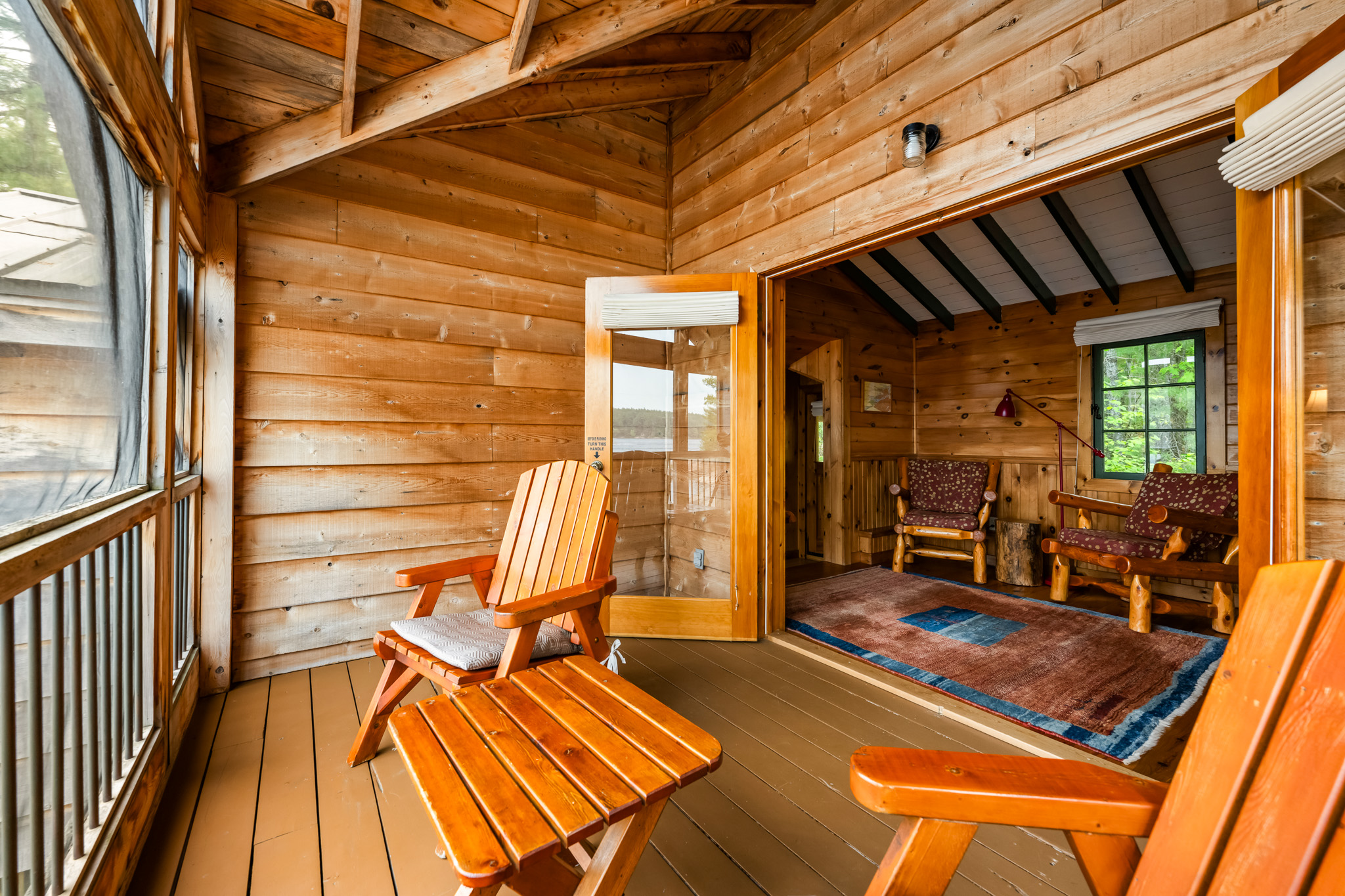 A cottage that sits on the shoreline of the French River. The cottage has a separate bedroom, living room and kitchen/eating area. French doors open onto a screened porch. The cottage has lovely views across the bay and swimming is possible right by the cottage.
