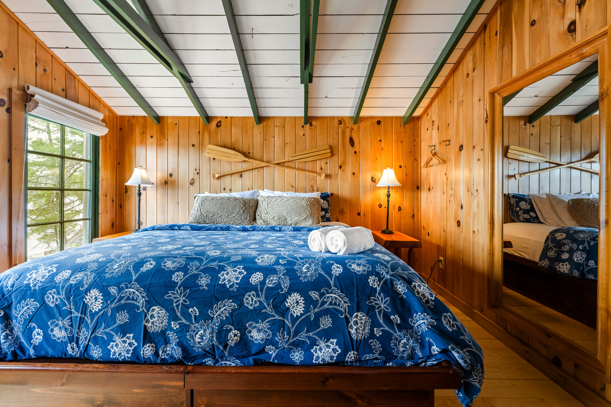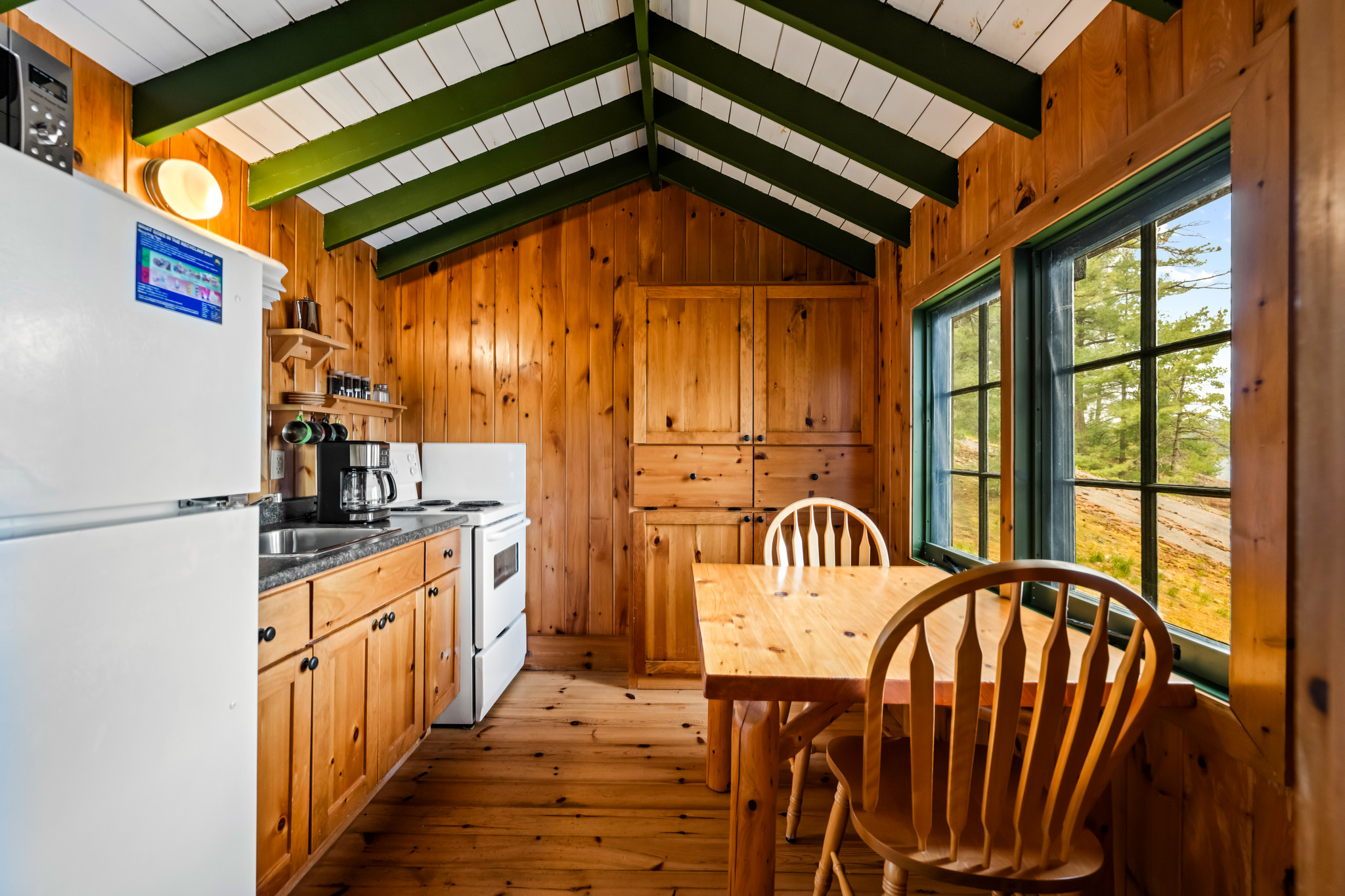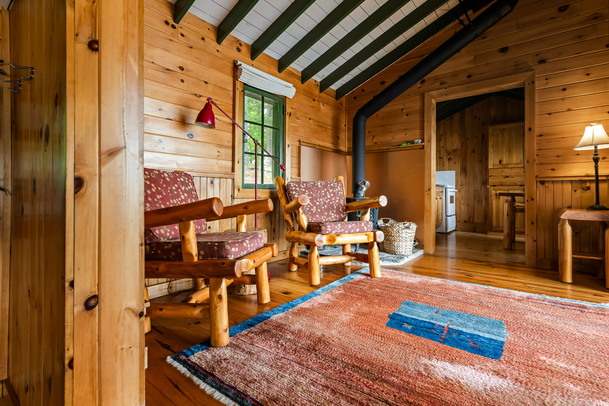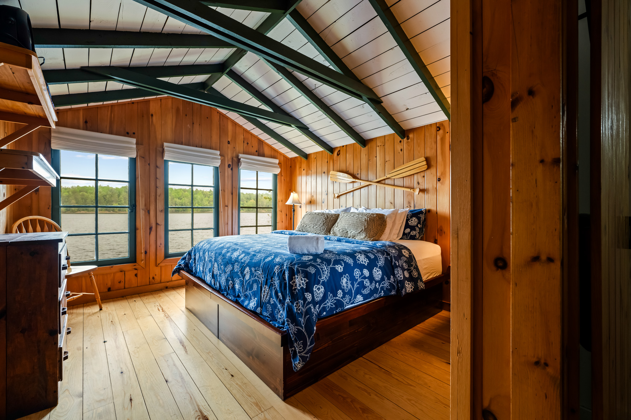 A cottage that sits on the shoreline of the French River. The cottage has a separate bedroom, living room and kitchen/eating area. French doors open onto a screened porch. The cottage has lovely views across the bay and swimming is possible right by the cottage.
