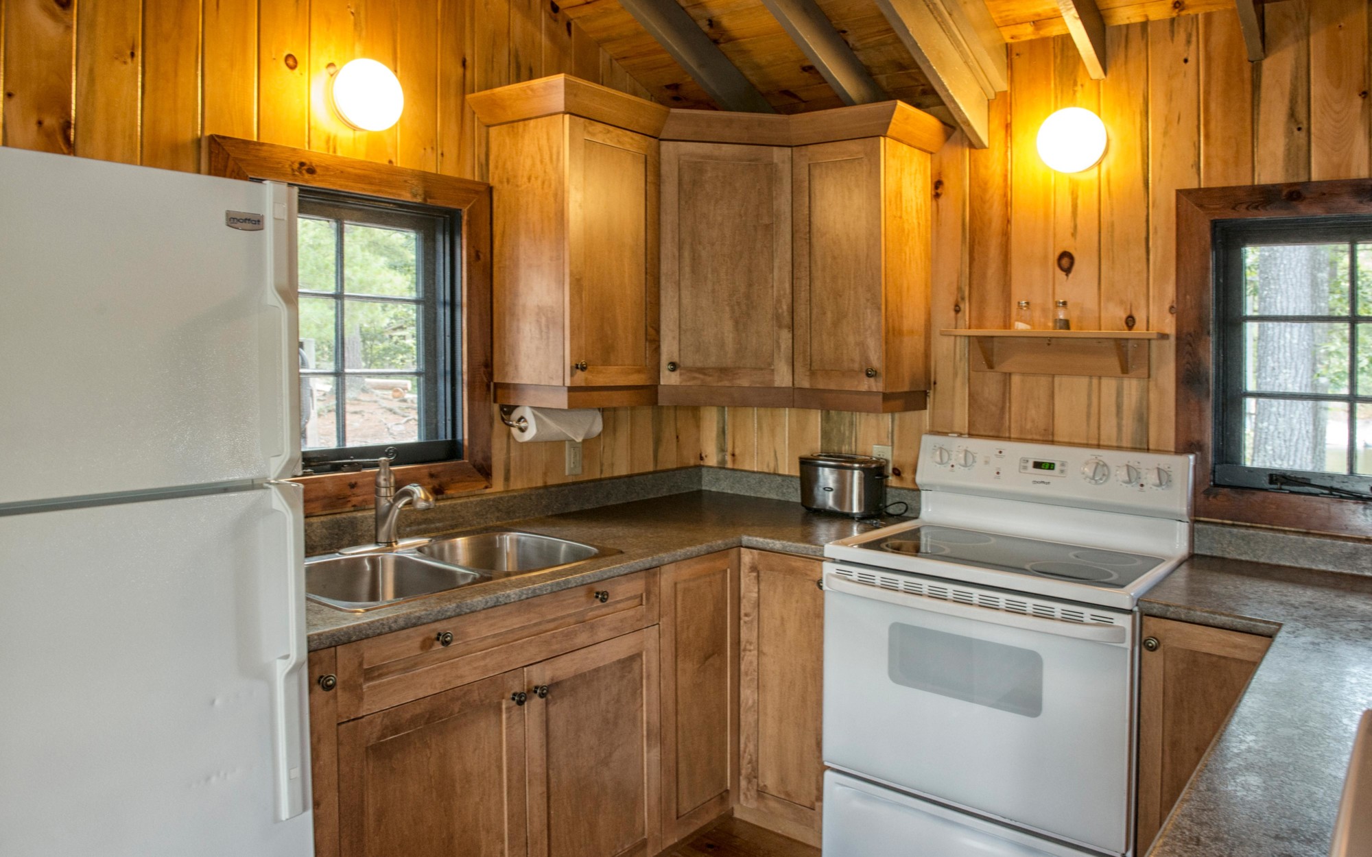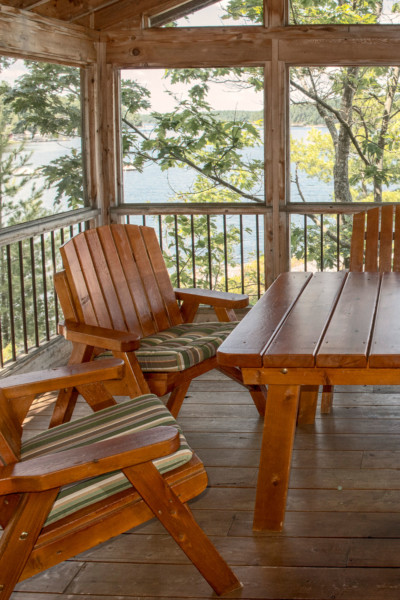 Across the bridge and overlooking a beautiful bay of the French River, Samuel de Champlain, sits on a stunning pink granite point. A large living room with French doors opens onto a cedar screened porch with 180 degree views of the water. Off the living room are three bedrooms with king beds. Choose twins if you prefer. There are three bathrooms, two ensuite. The large kitchen is a place you will want to sit, eat your hamper breakfast, delivered each morning to your door. Enjoy your breakfast in the kitchen watching the sunrise & move over to the screened in porch in the evening to watch the sunset.