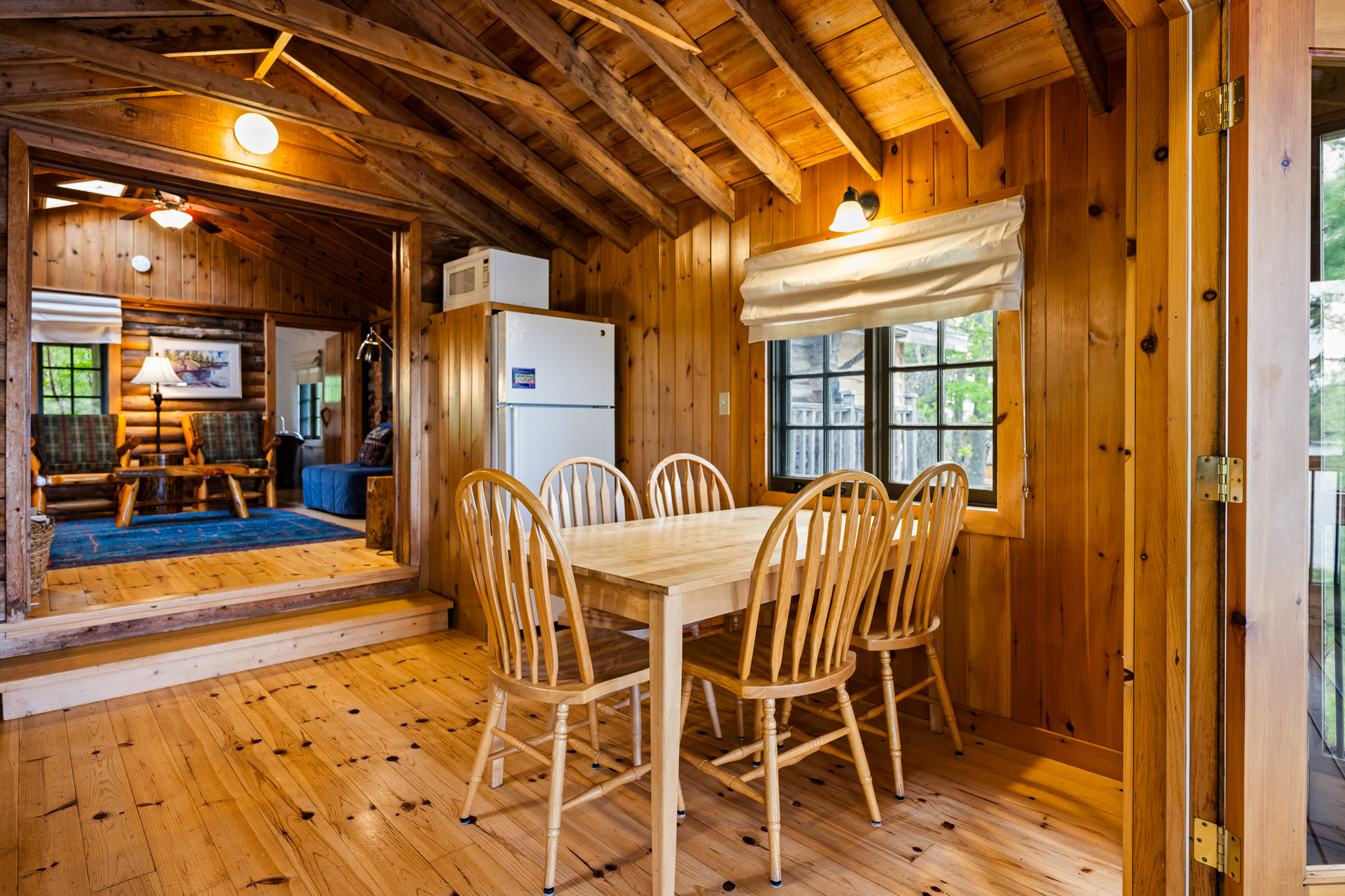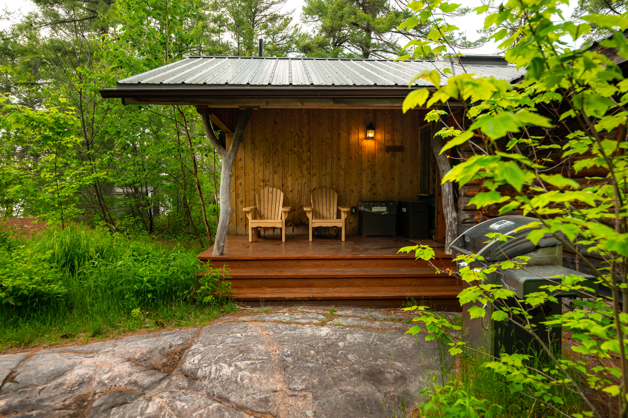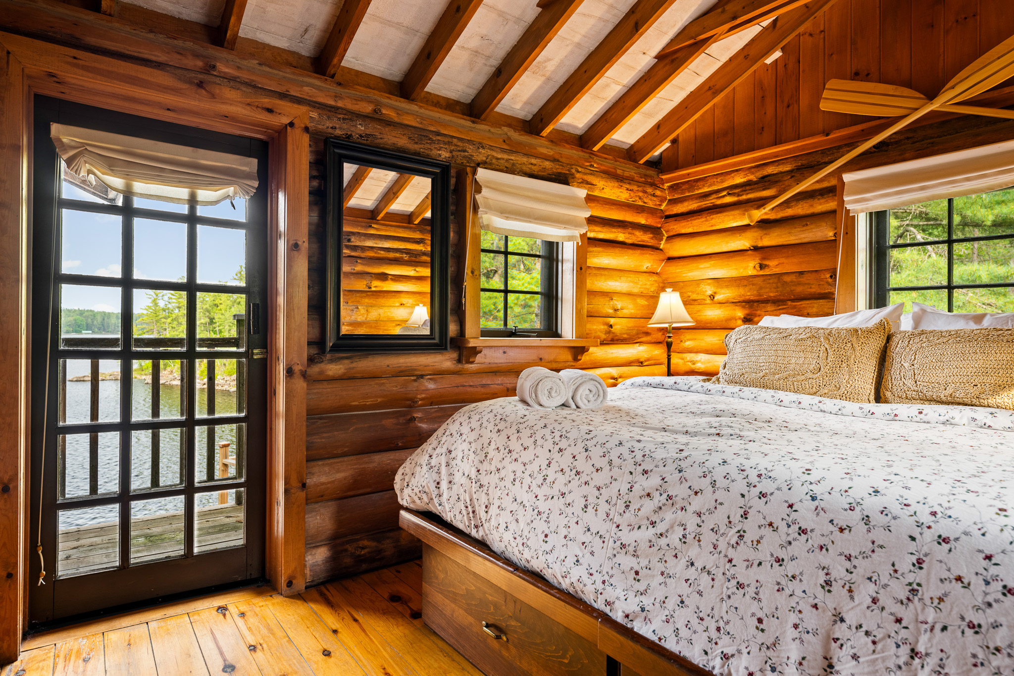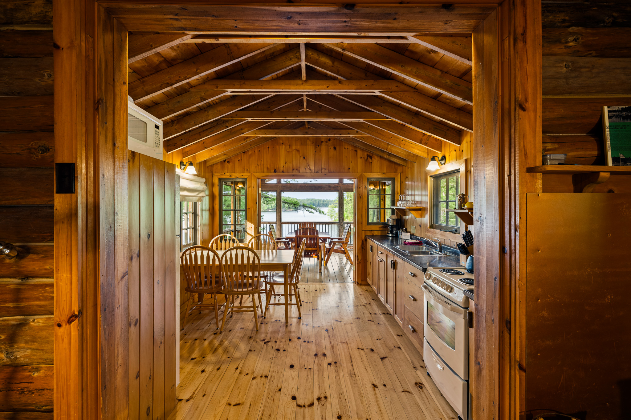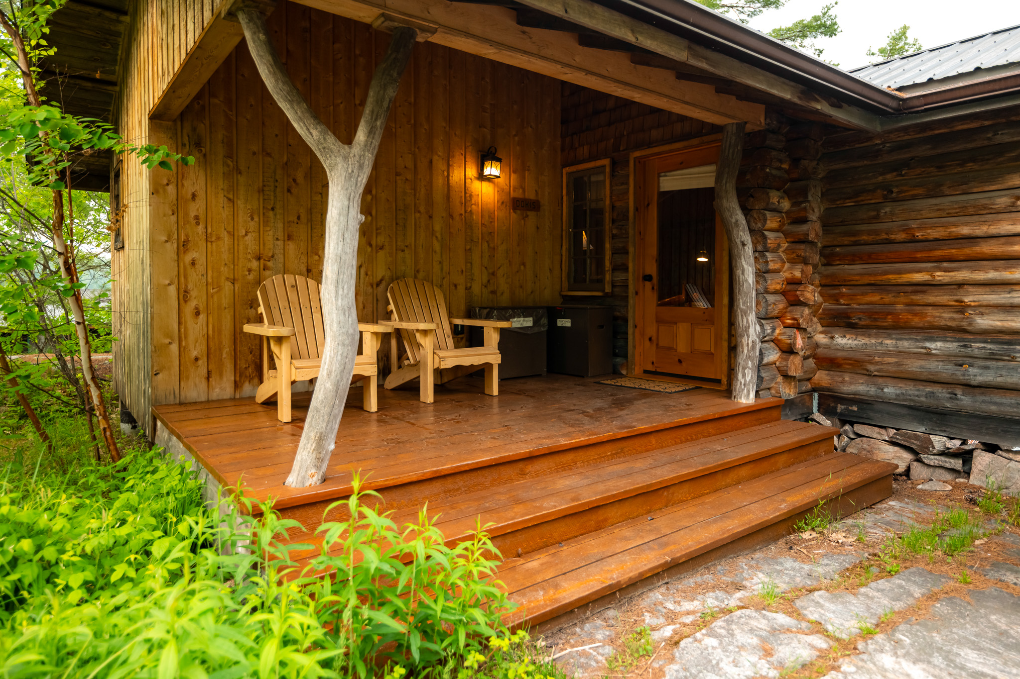 Lodge at Pine Cove’s only log cabin. Named after an Ojibwa chief of the mid 1800s. Norman Dokis Jr. his great-great-grandson, built the cottage for us. Dokis is sited on a smooth granite slope, with really wonderful views of the water. Spacious inside with more than enough room for four guests. Dokis has a large living room, dining area and kitchen. French doors open onto a large screened porch. It also has a back porch were reading a book in the early morning sun is a real treat. The cottage has a feel to it that takes one far back in the tradition of early Canadian log cabins but with all the modern amenities – luxury rustic chic at its best.