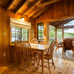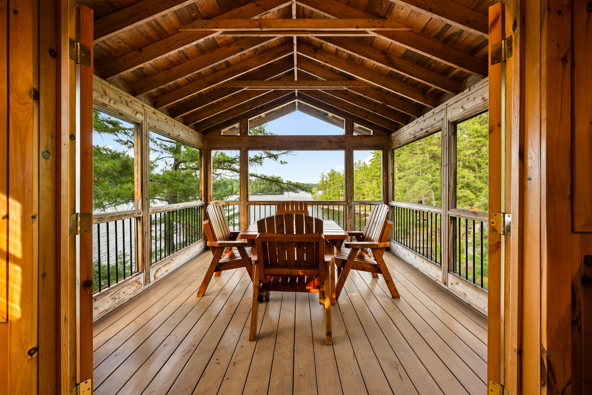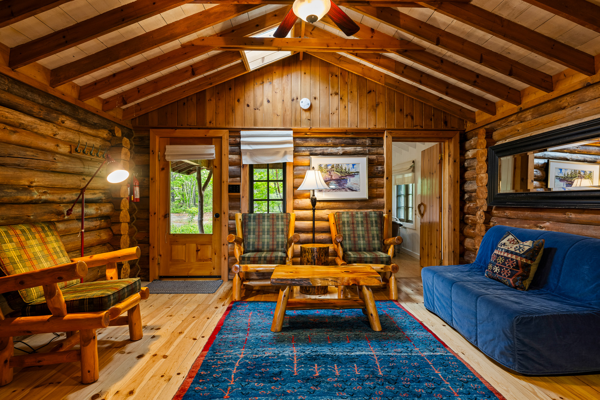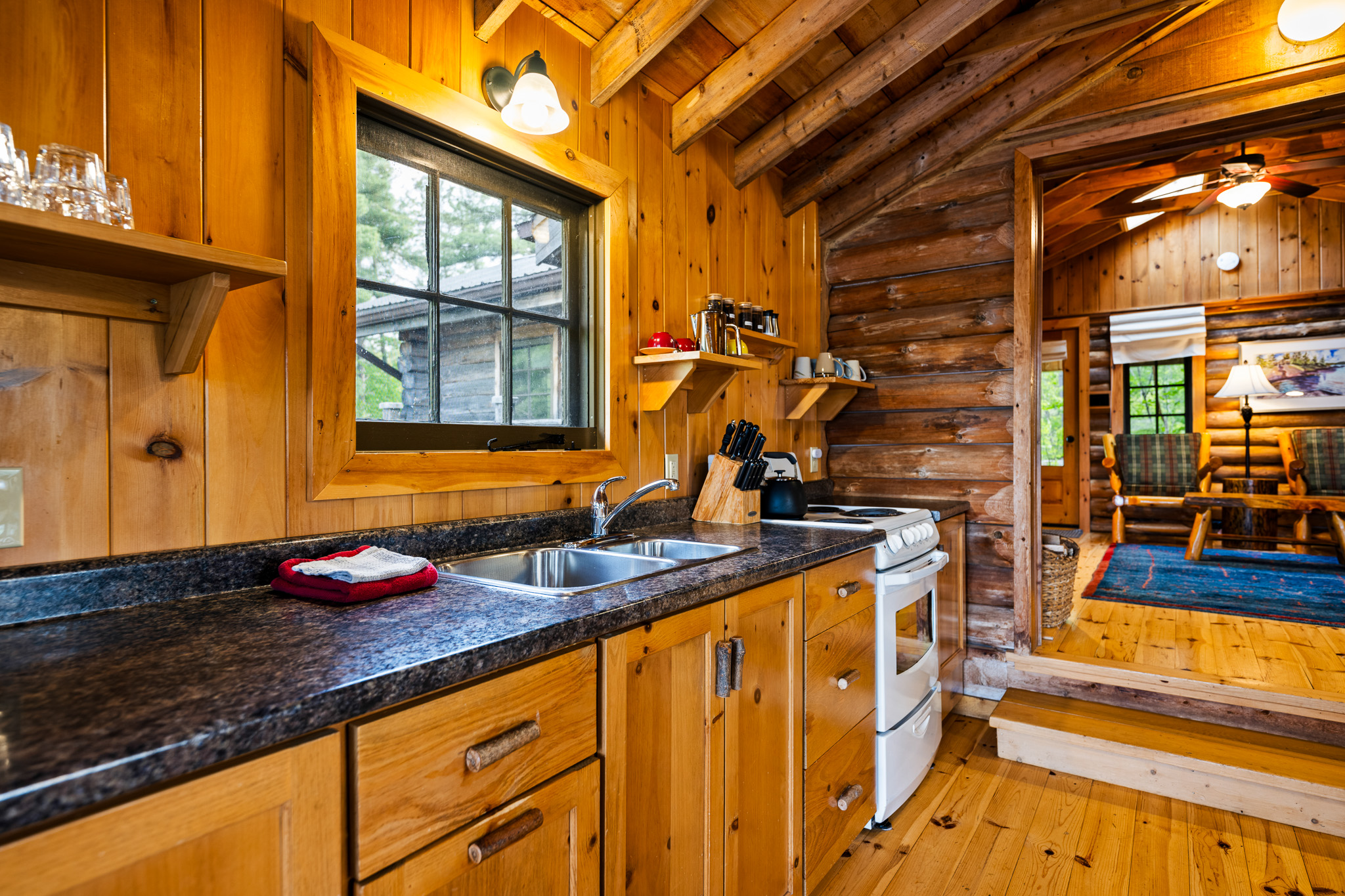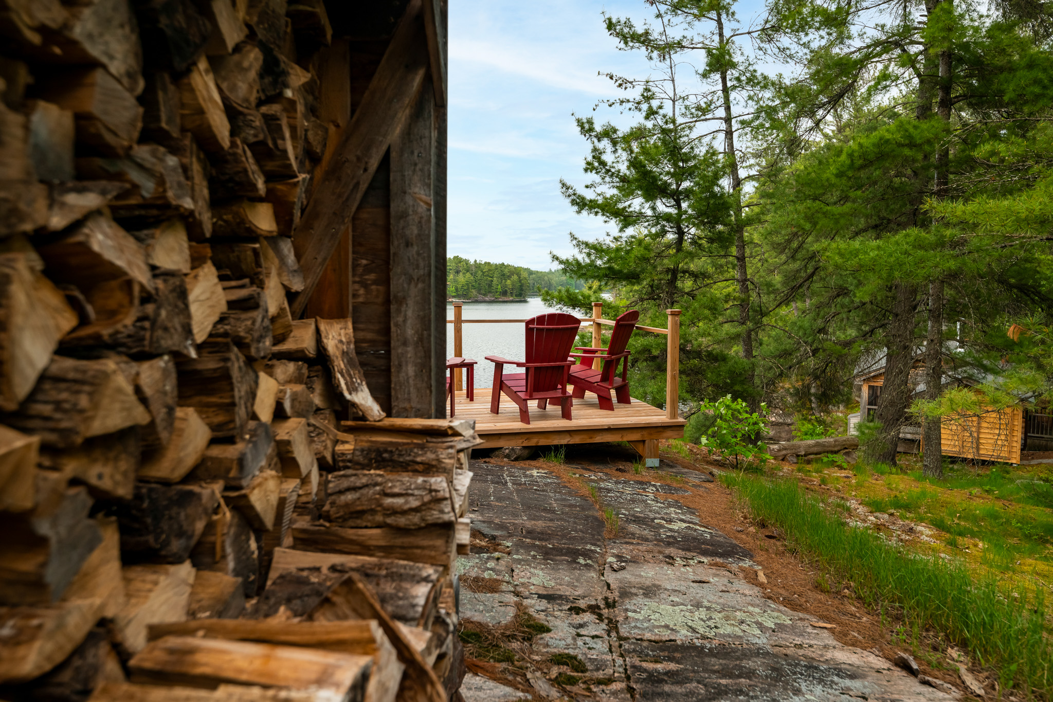 Lodge at Pine Cove’s only log cabin. Named after an Ojibwa chief of the mid 1800s. Norman Dokis Jr. his great-great-grandson, built the cottage for us. Dokis is sited on a smooth granite slope, with really wonderful views of the water. Spacious inside with more than enough room for four guests. Dokis has a large living room, dining area and kitchen. French doors open onto a large screened porch. It also has a back porch were reading a book in the early morning sun is a real treat. The cottage has a feel to it that takes one far back in the tradition of early Canadian log cabins but with all the modern amenities – luxury rustic chic at its best.