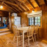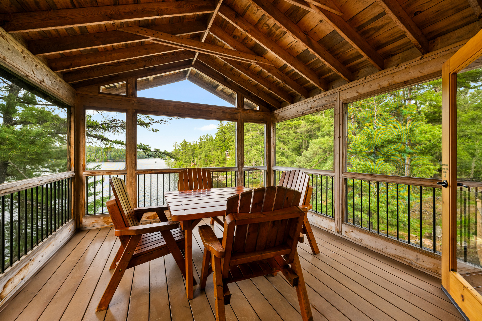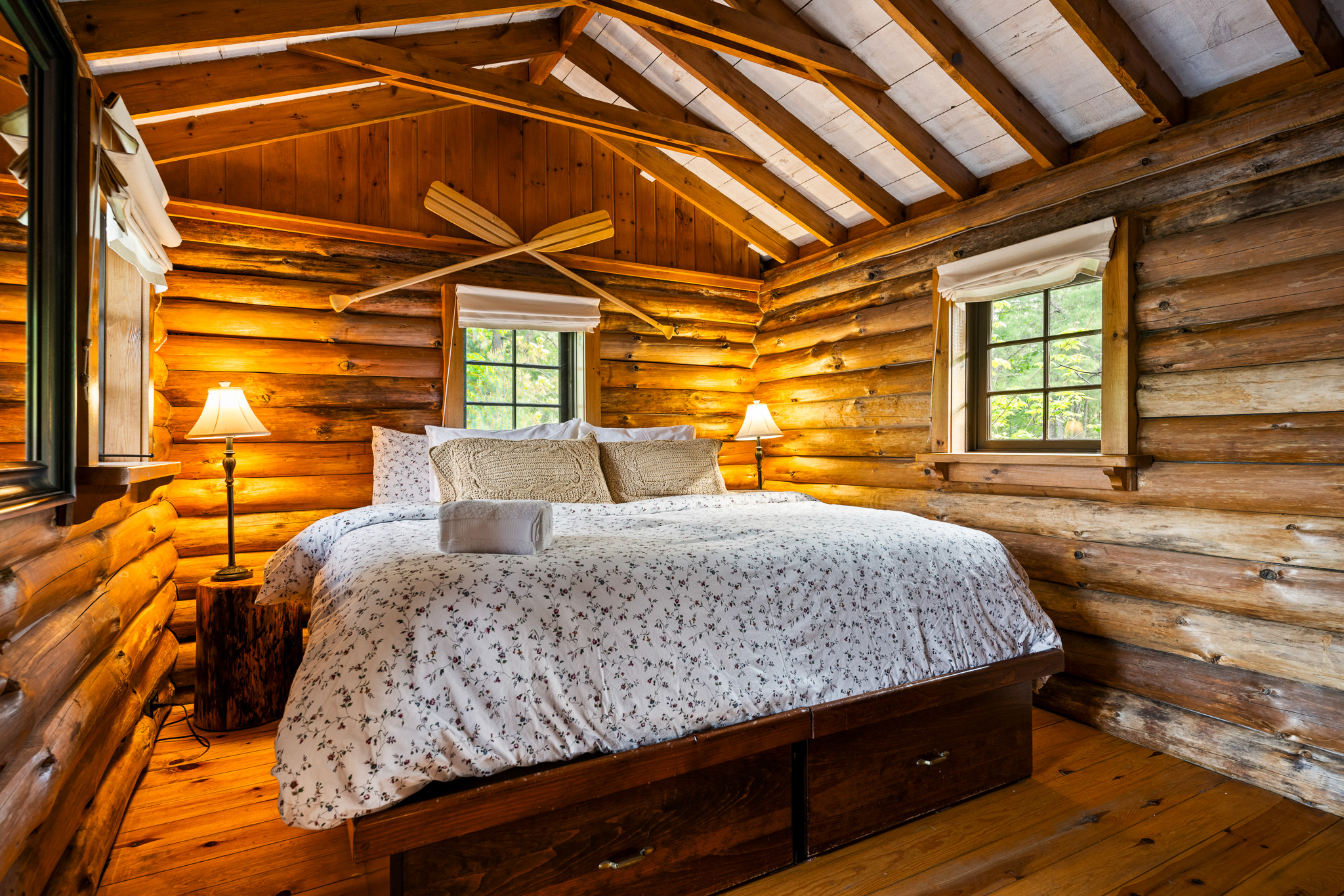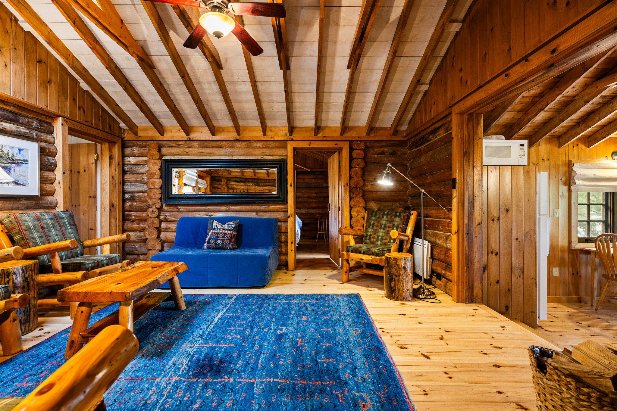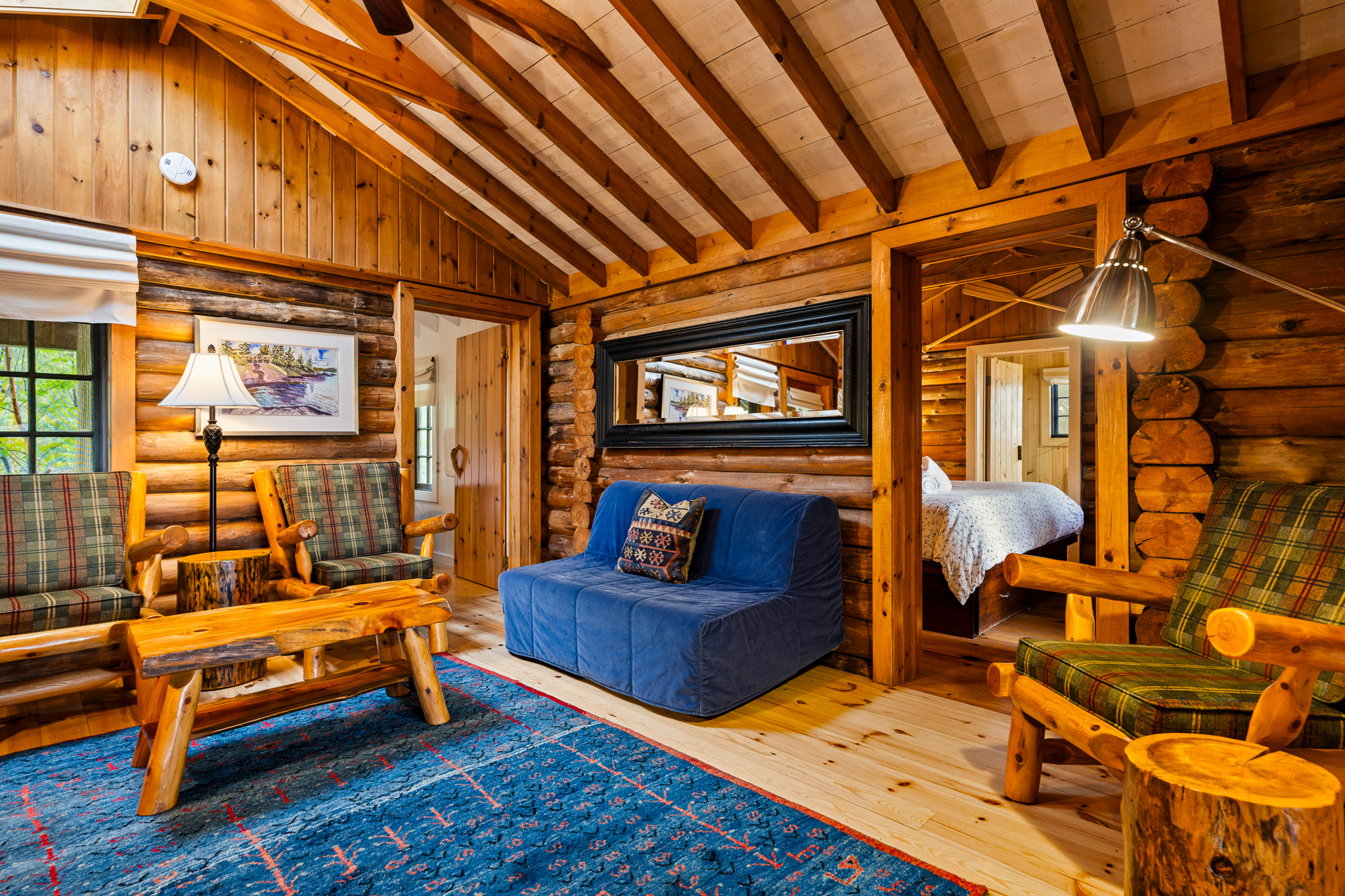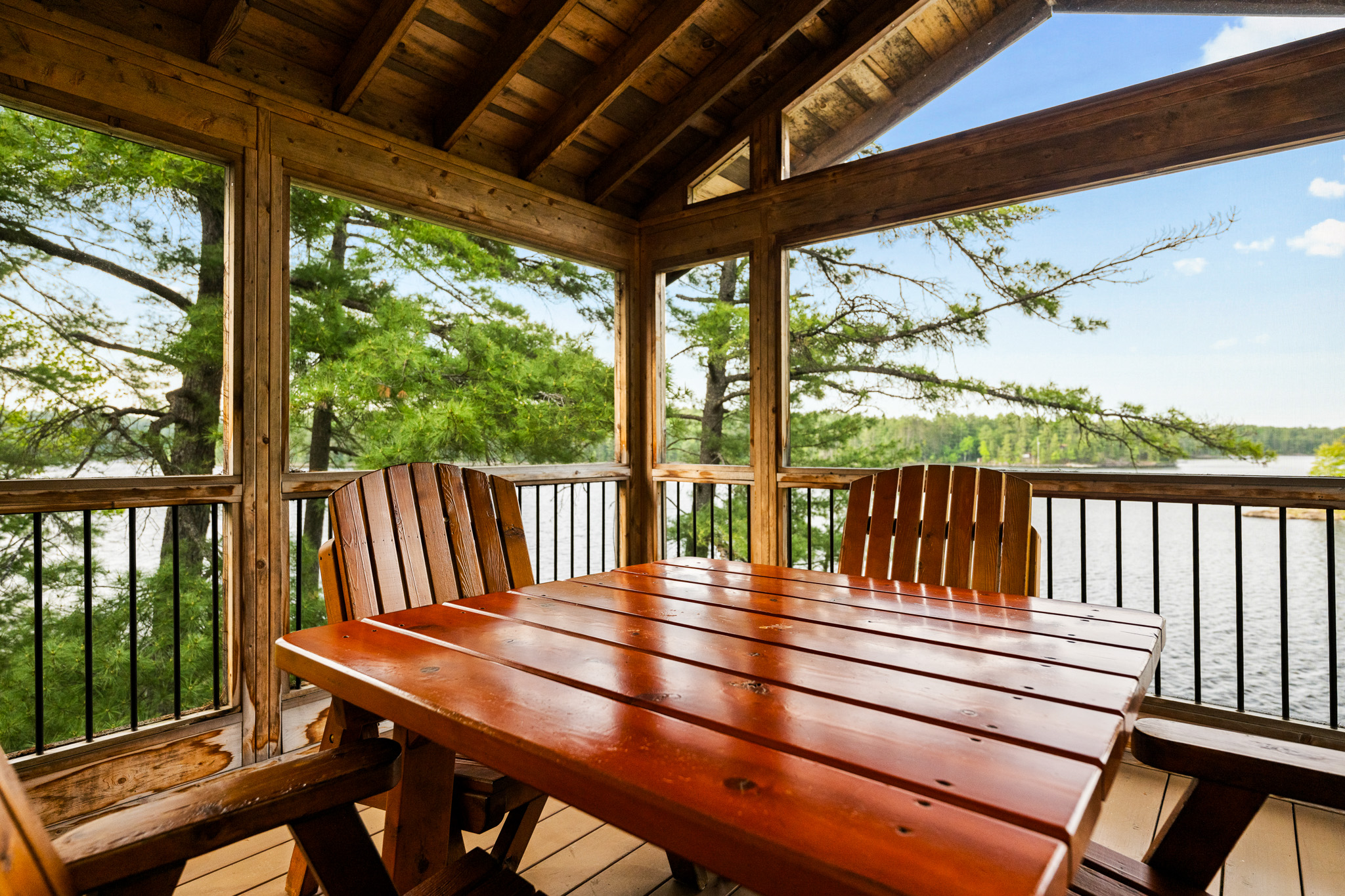 Lodge at Pine Cove’s only log cabin. Named after an Ojibwa chief of the mid 1800s. Norman Dokis Jr. his great-great-grandson, built the cottage for us. Dokis is sited on a smooth granite slope, with really wonderful views of the water. Spacious inside with more than enough room for four guests. Dokis has a large living room, dining area and kitchen. French doors open onto a large screened porch. It also has a back porch were reading a book in the early morning sun is a real treat. The cottage has a feel to it that takes one far back in the tradition of early Canadian log cabins but with all the modern amenities – luxury rustic chic at its best.
