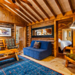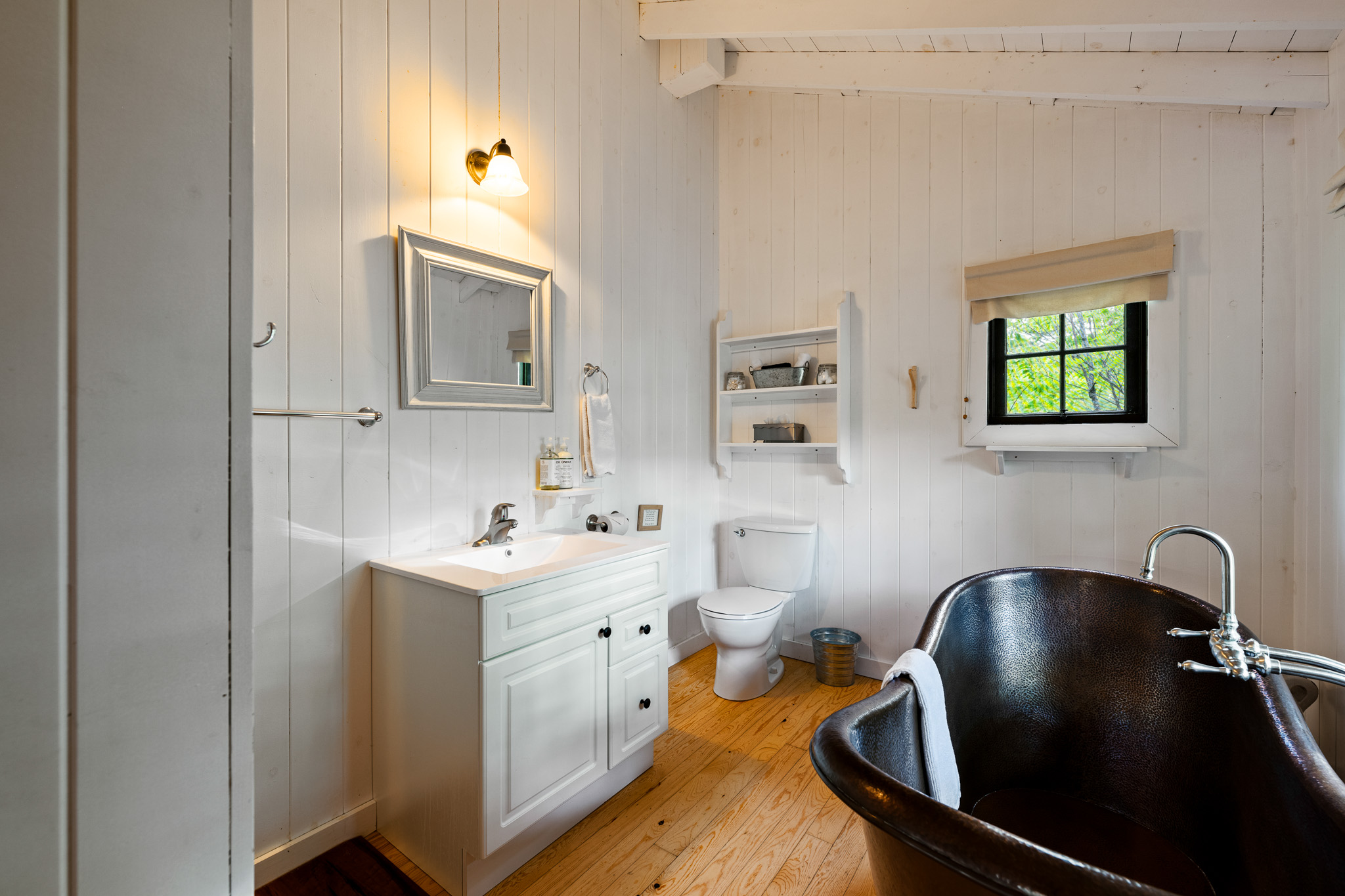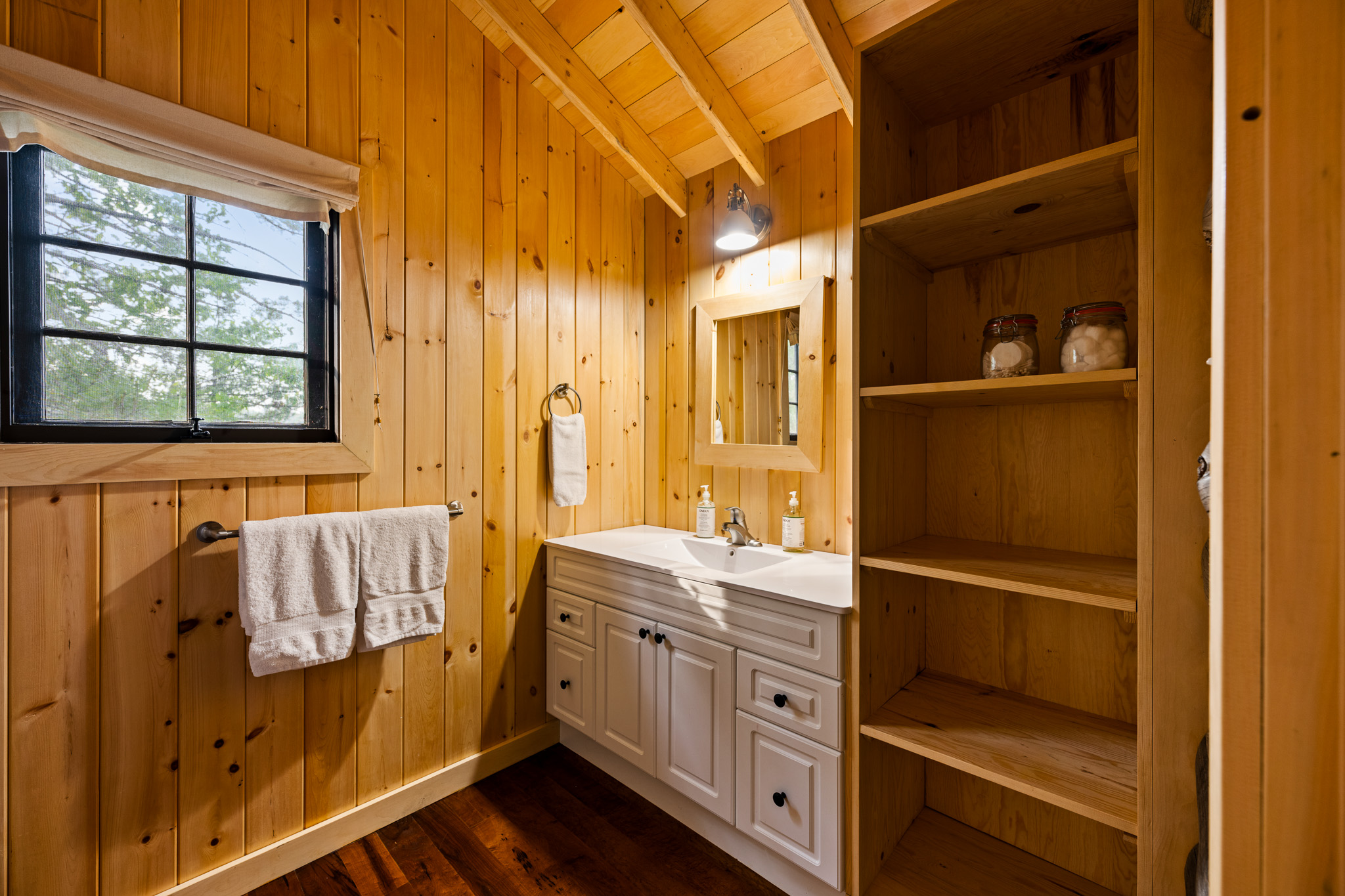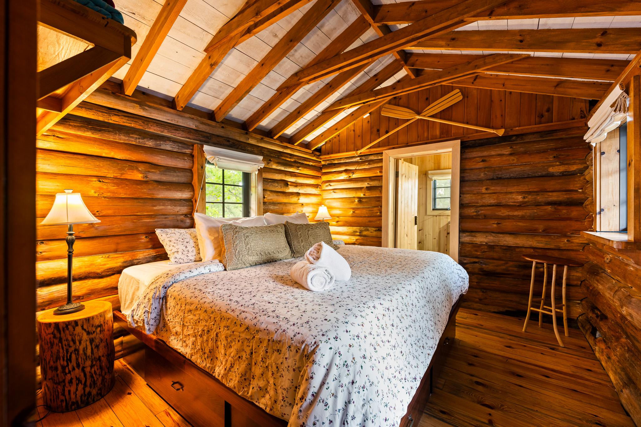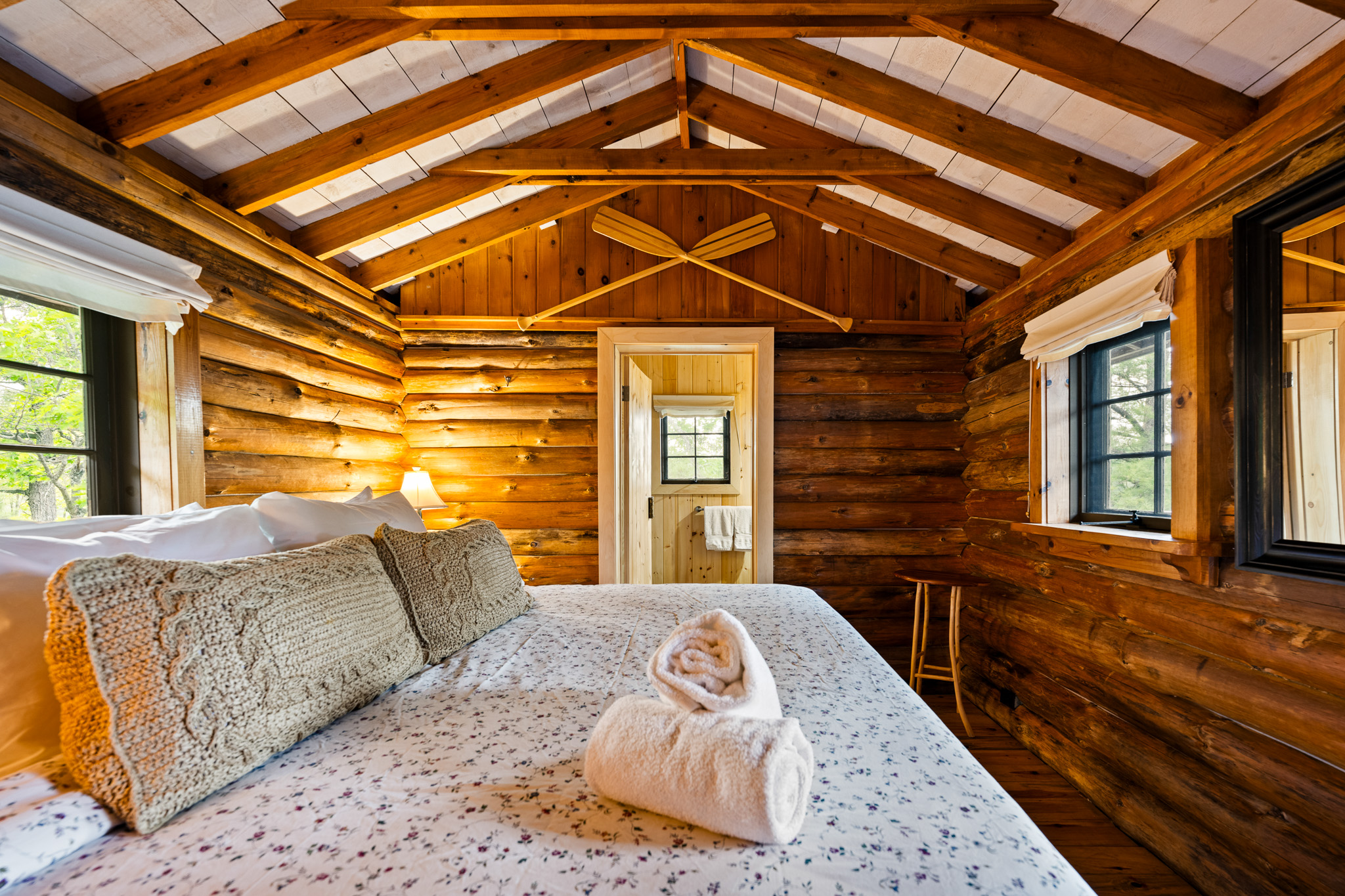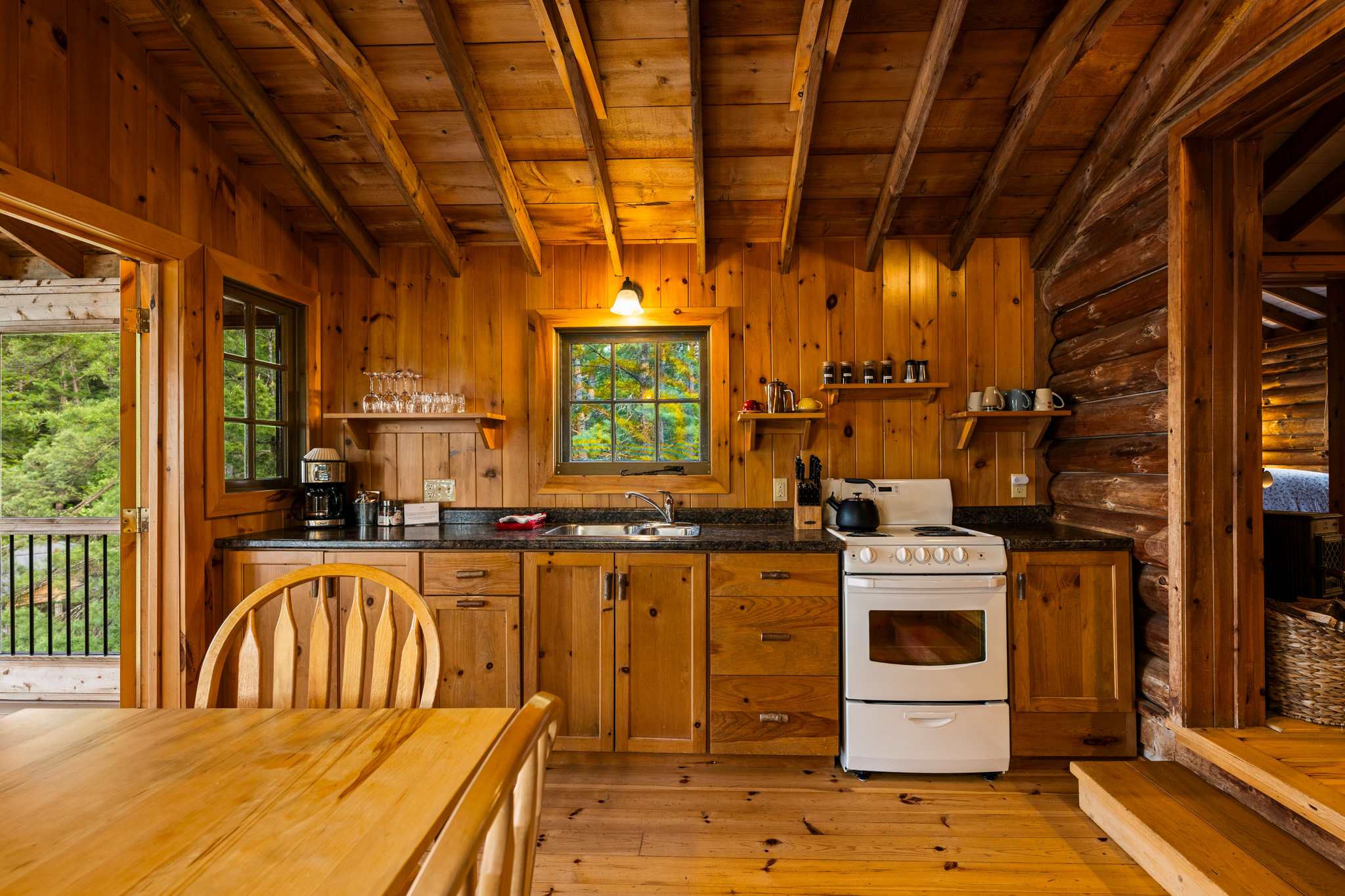 Lodge at Pine Cove’s only log cabin. Named after an Ojibwa chief of the mid 1800s. Norman Dokis Jr. his great-great-grandson, built the cottage for us. Dokis is sited on a smooth granite slope, with really wonderful views of the water. Spacious inside with more than enough room for four guests. Dokis has a large living room, dining area and kitchen. French doors open onto a large screened porch. It also has a back porch were reading a book in the early morning sun is a real treat. The cottage has a feel to it that takes one far back in the tradition of early Canadian log cabins but with all the modern amenities – luxury rustic chic at its best.