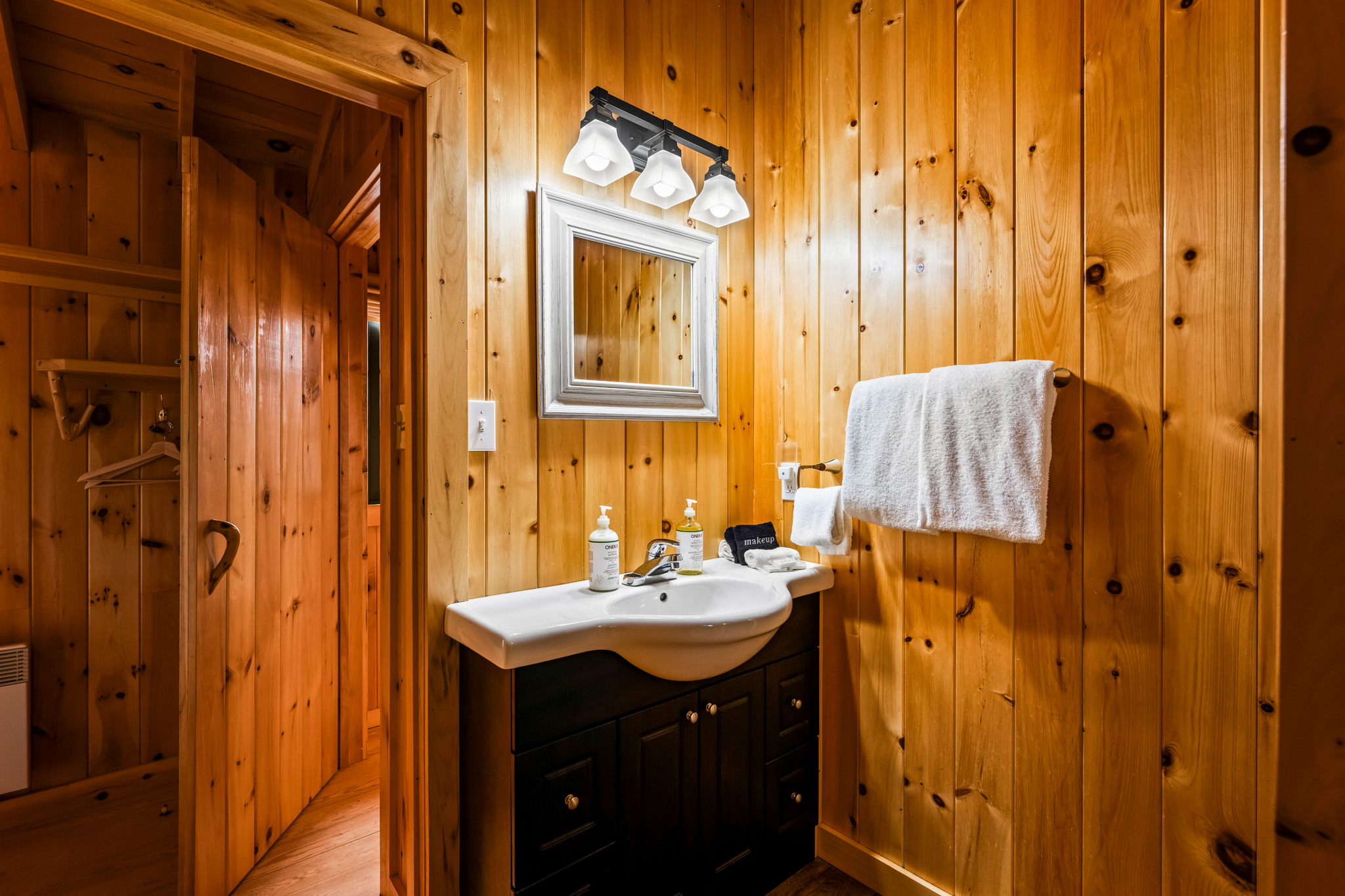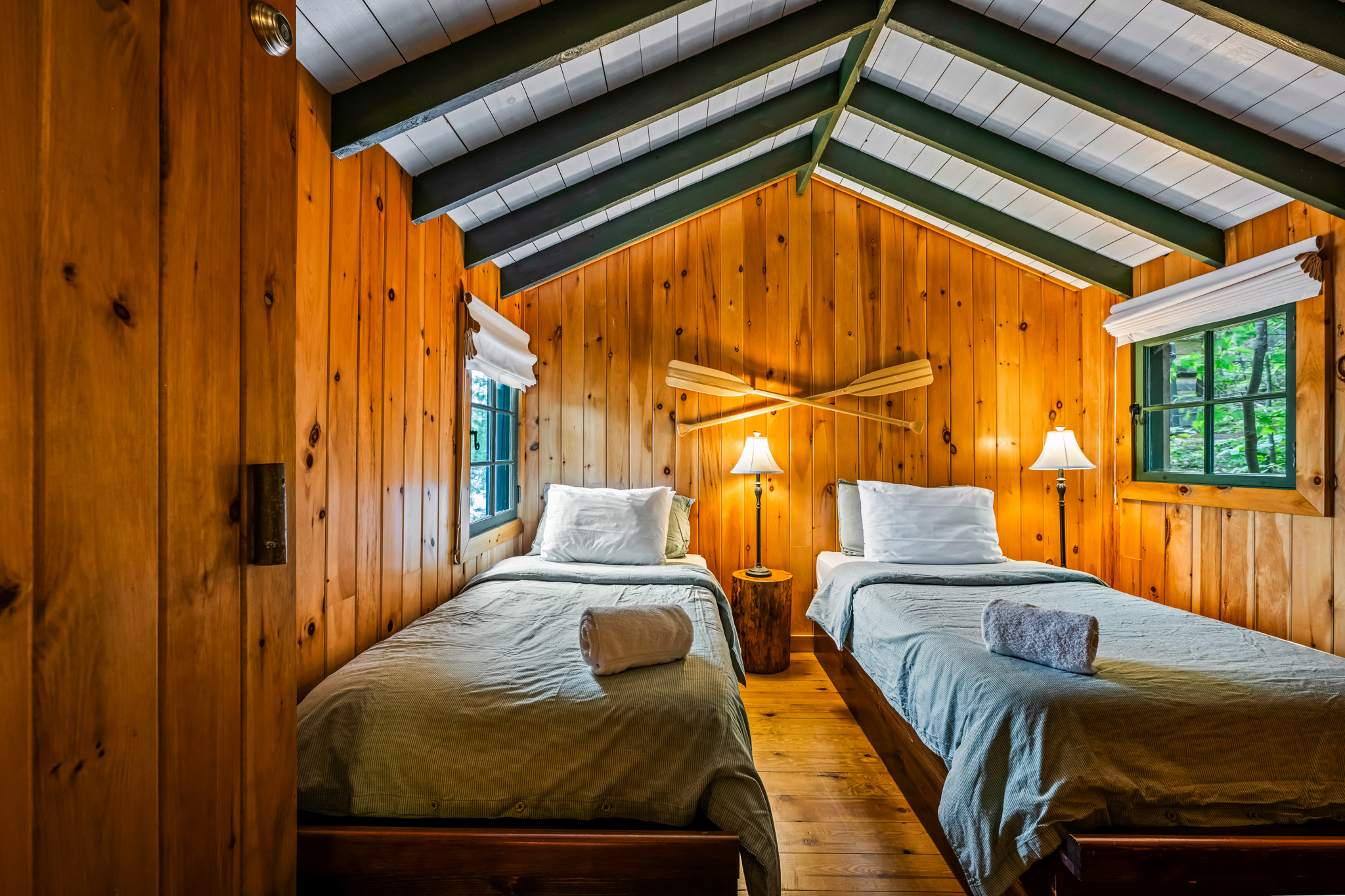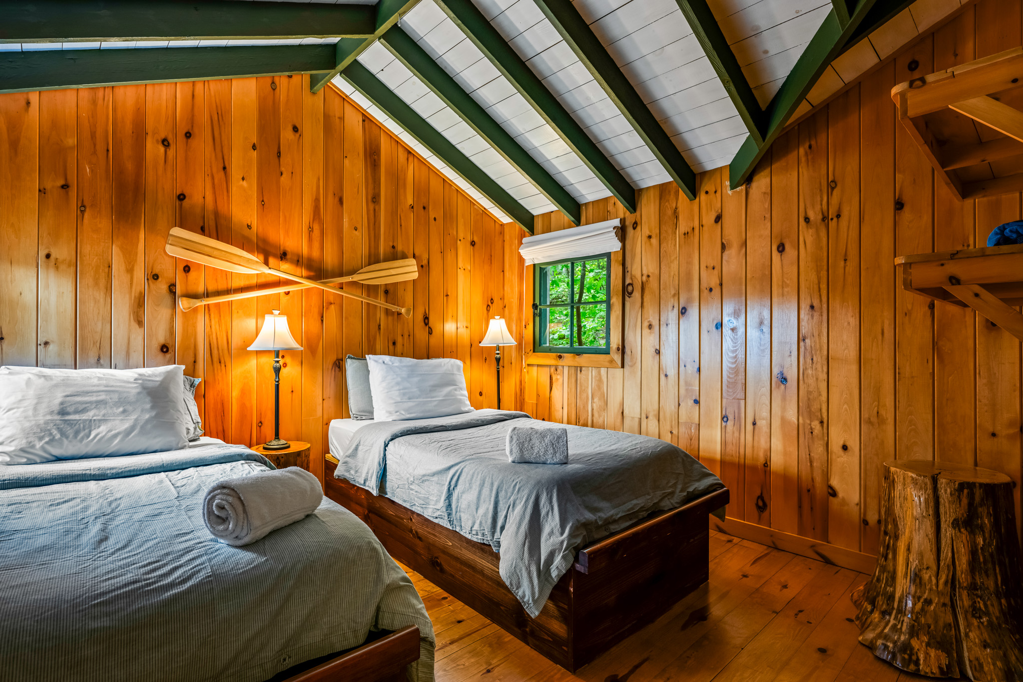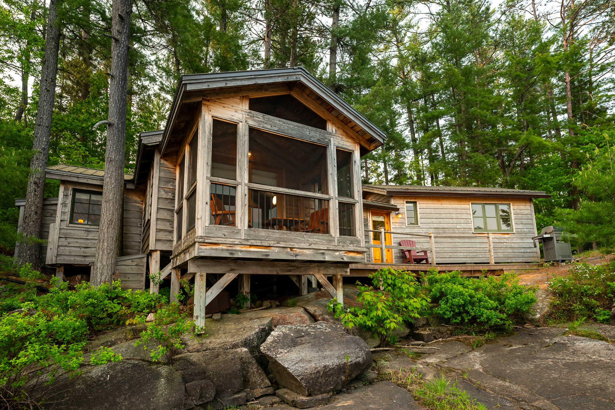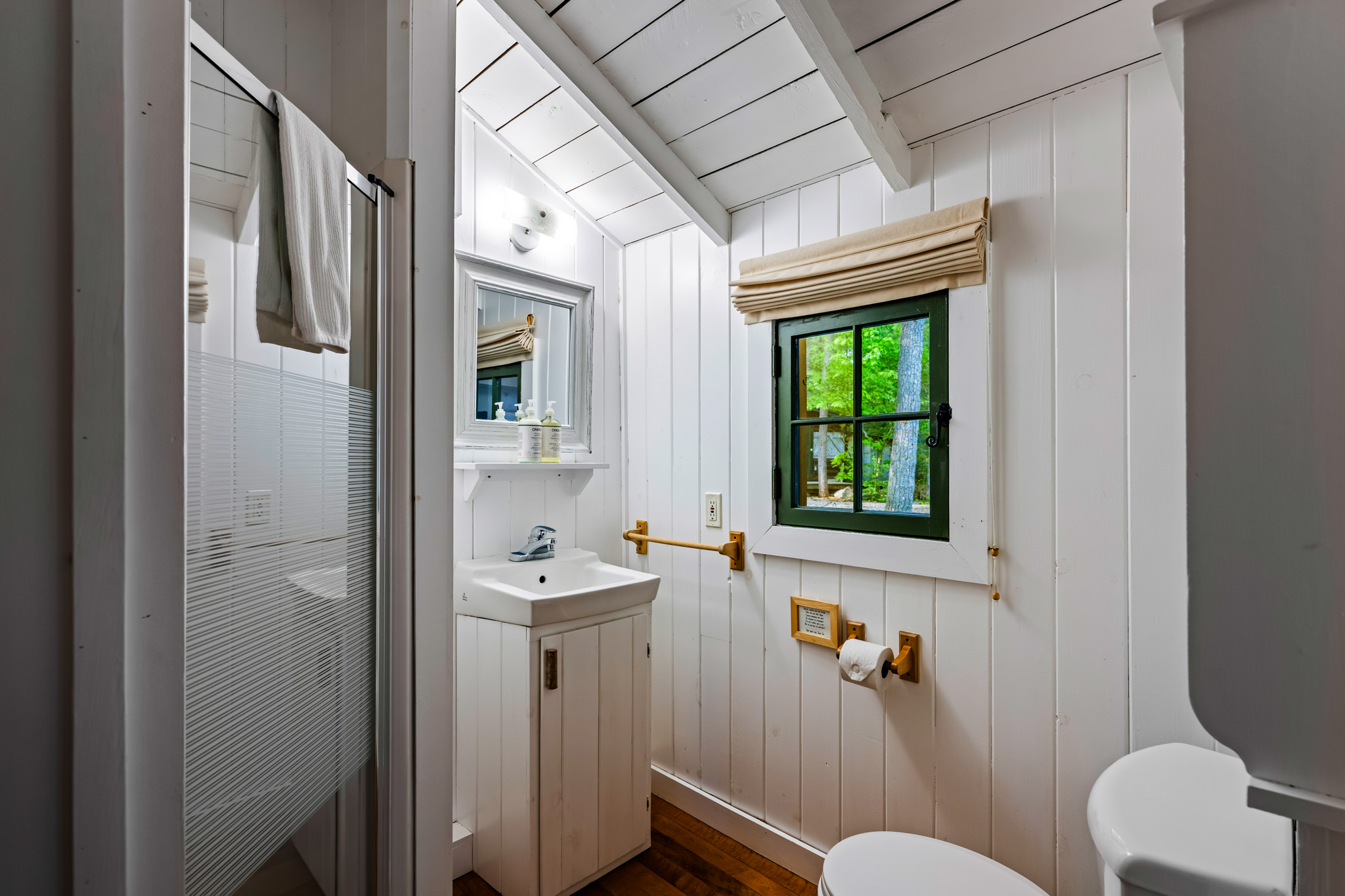 The screened porch hangs almost over the water and is a great place to relax. Views across the bay are lovely. The cottage has a kitchen and eating area, living room with French doors to the screened porch. A bedroom area with king bed that opens out into the living room & separate bedroom with a king bed (twins if you prefer). Pond is a comfortable & popular cottage.