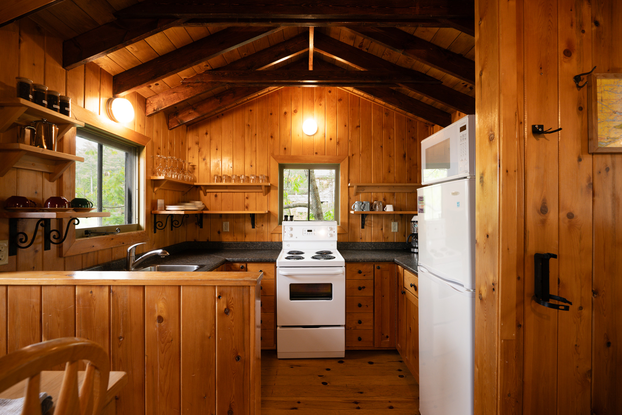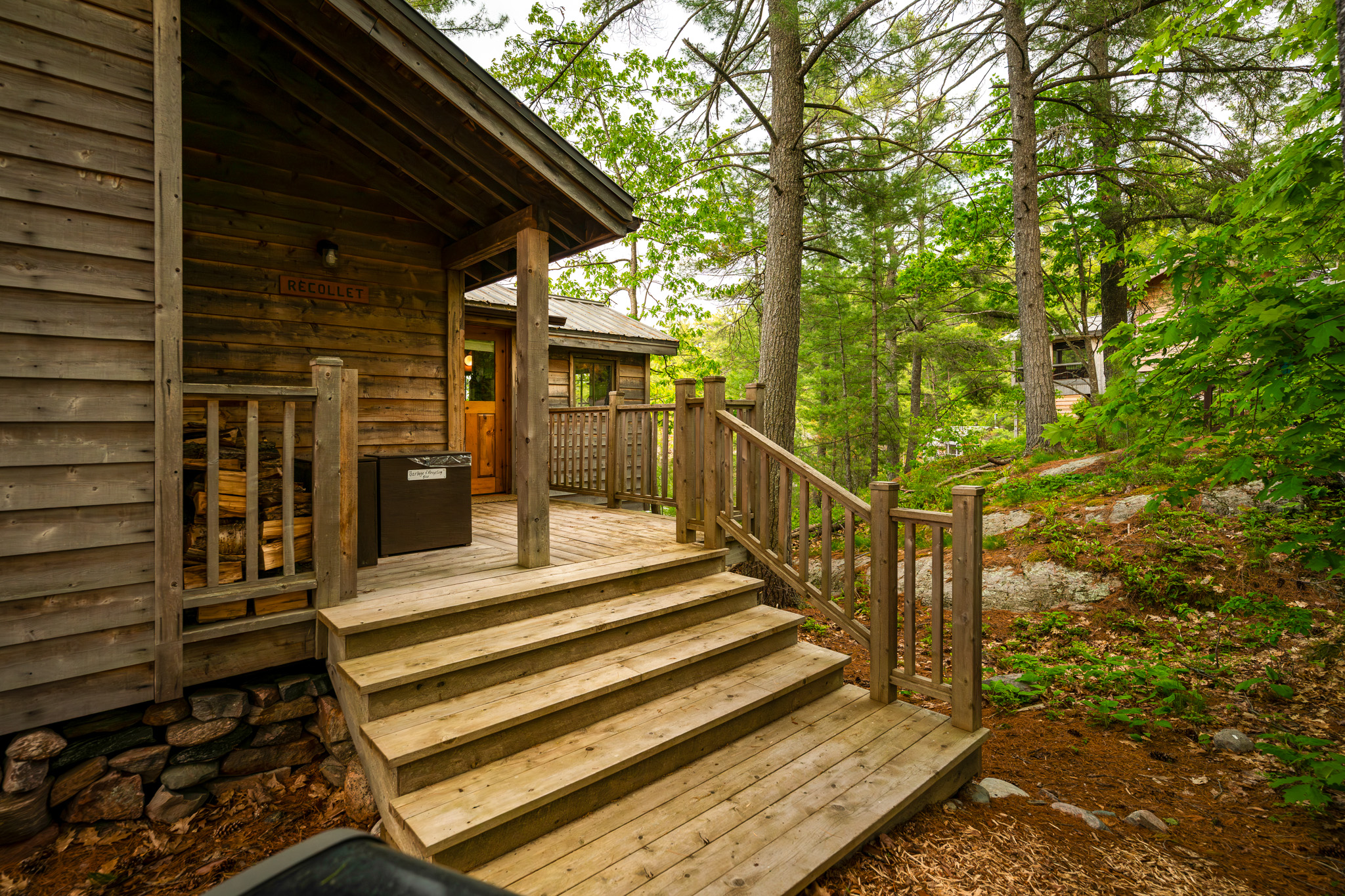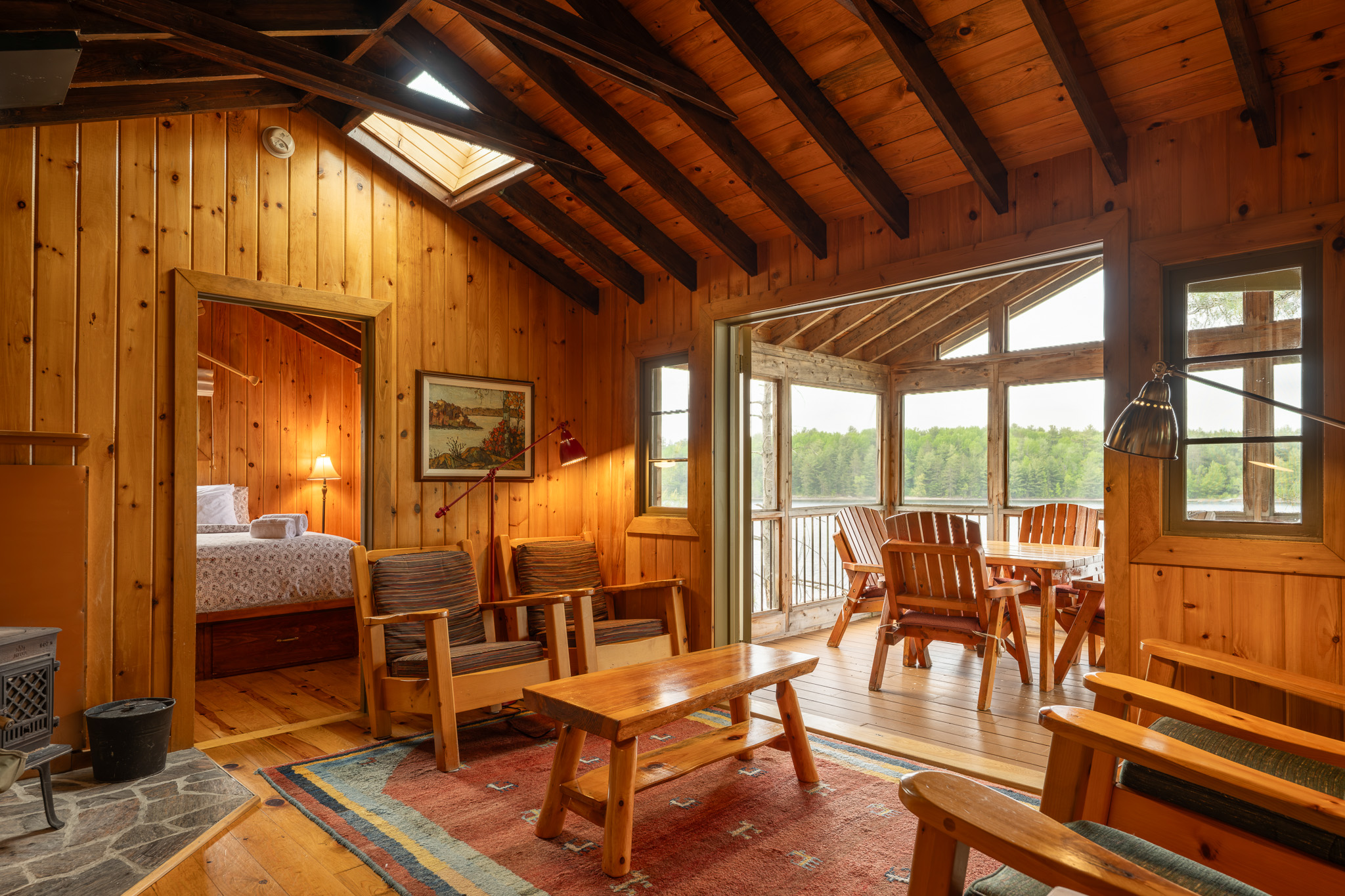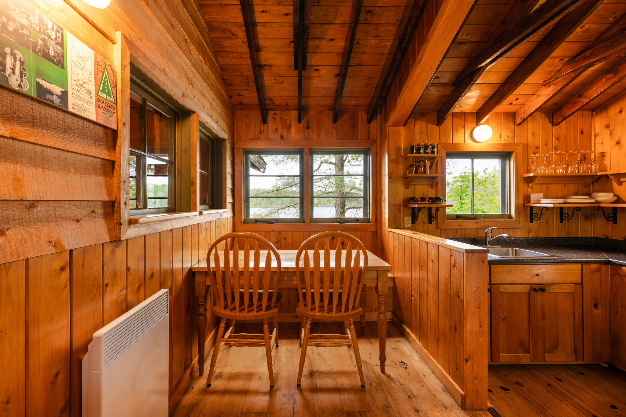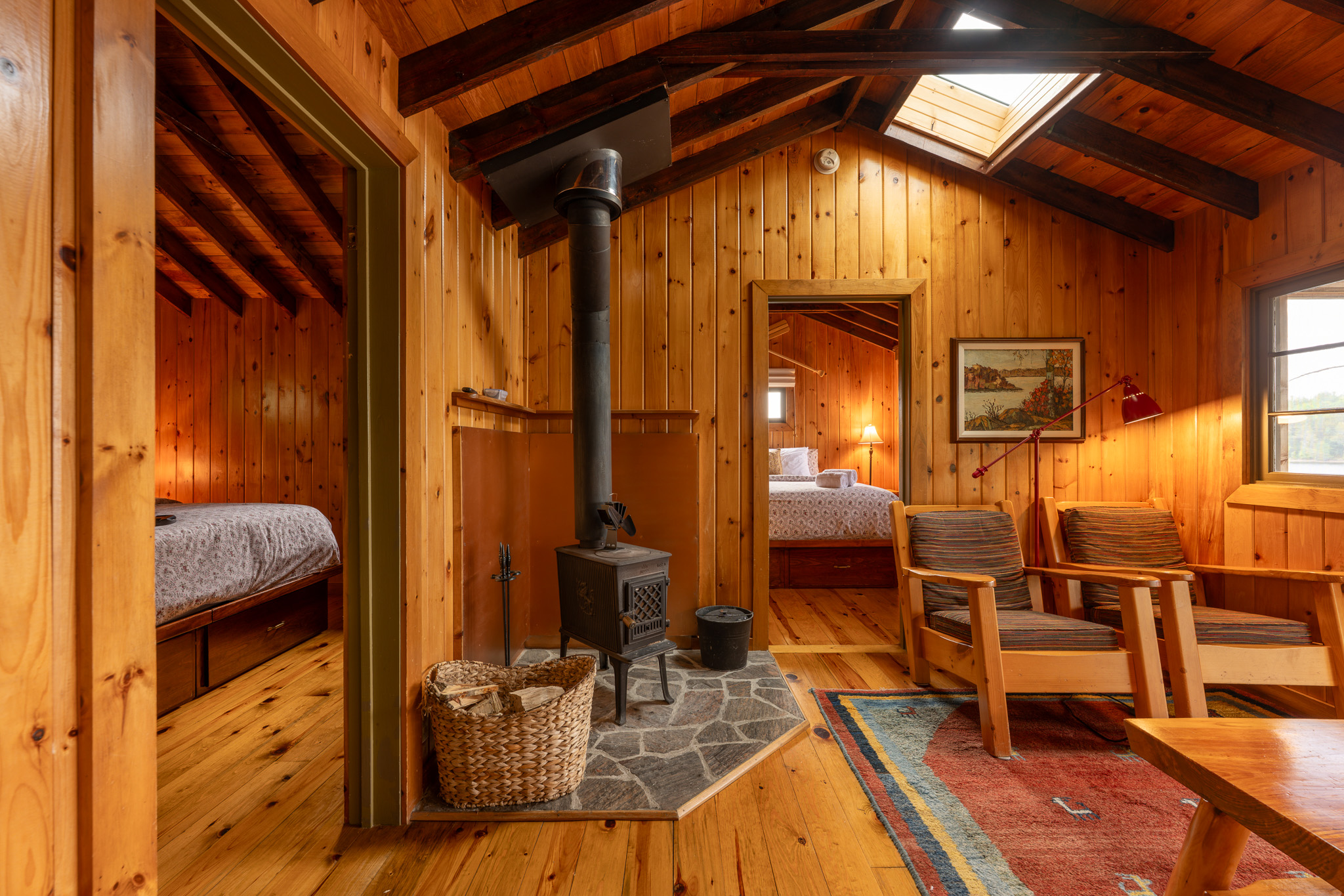 Recollet cottage has a lovely living room with French doors that access a large screened porch that overlooks a large bay. Off the living room are two bedrooms both with king or twin beds, whichever you prefer. Eat your own delights in the custom built kitchen or cook a gourmet picnic ordered from our chef, on the BBQ.
