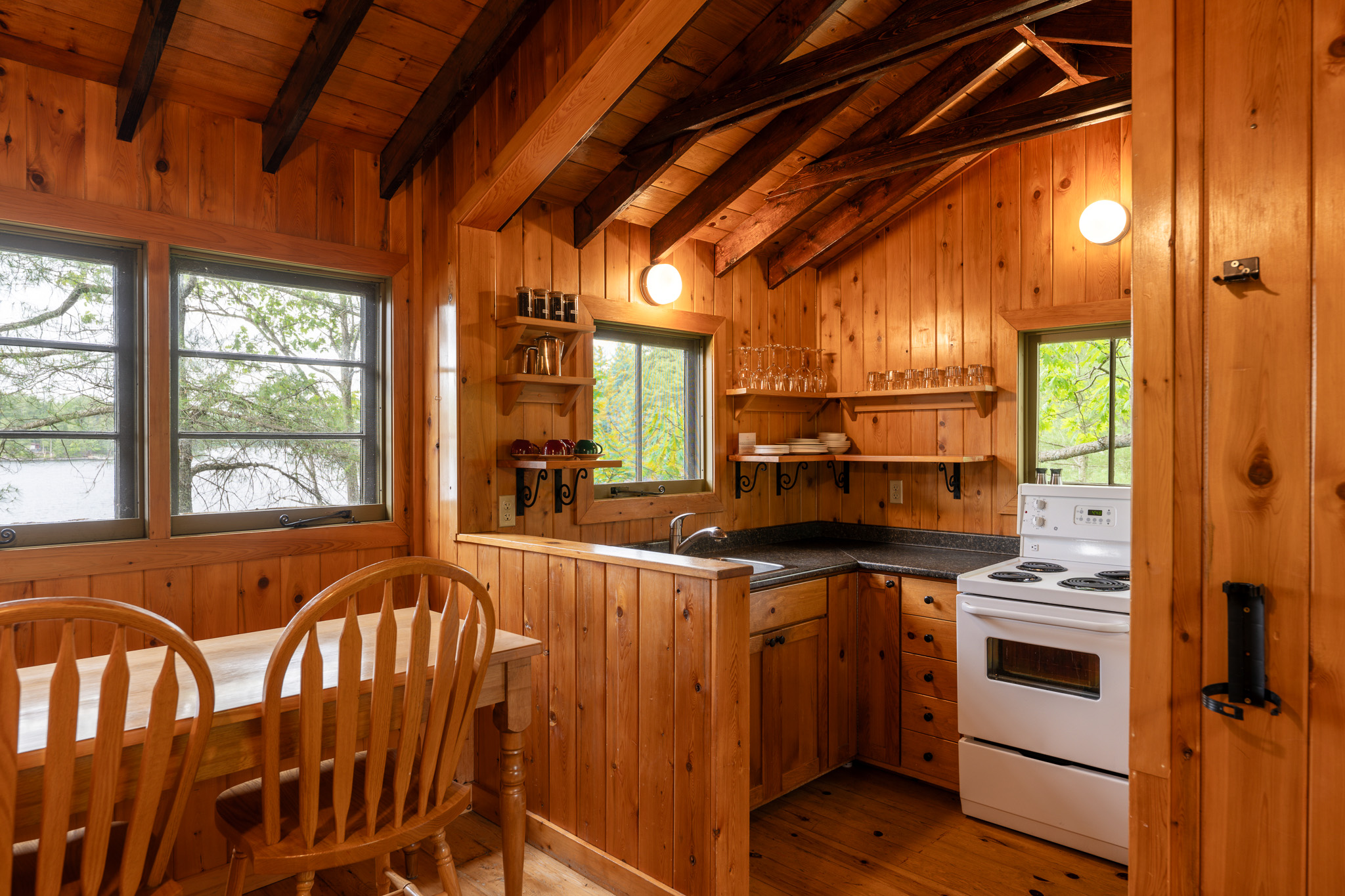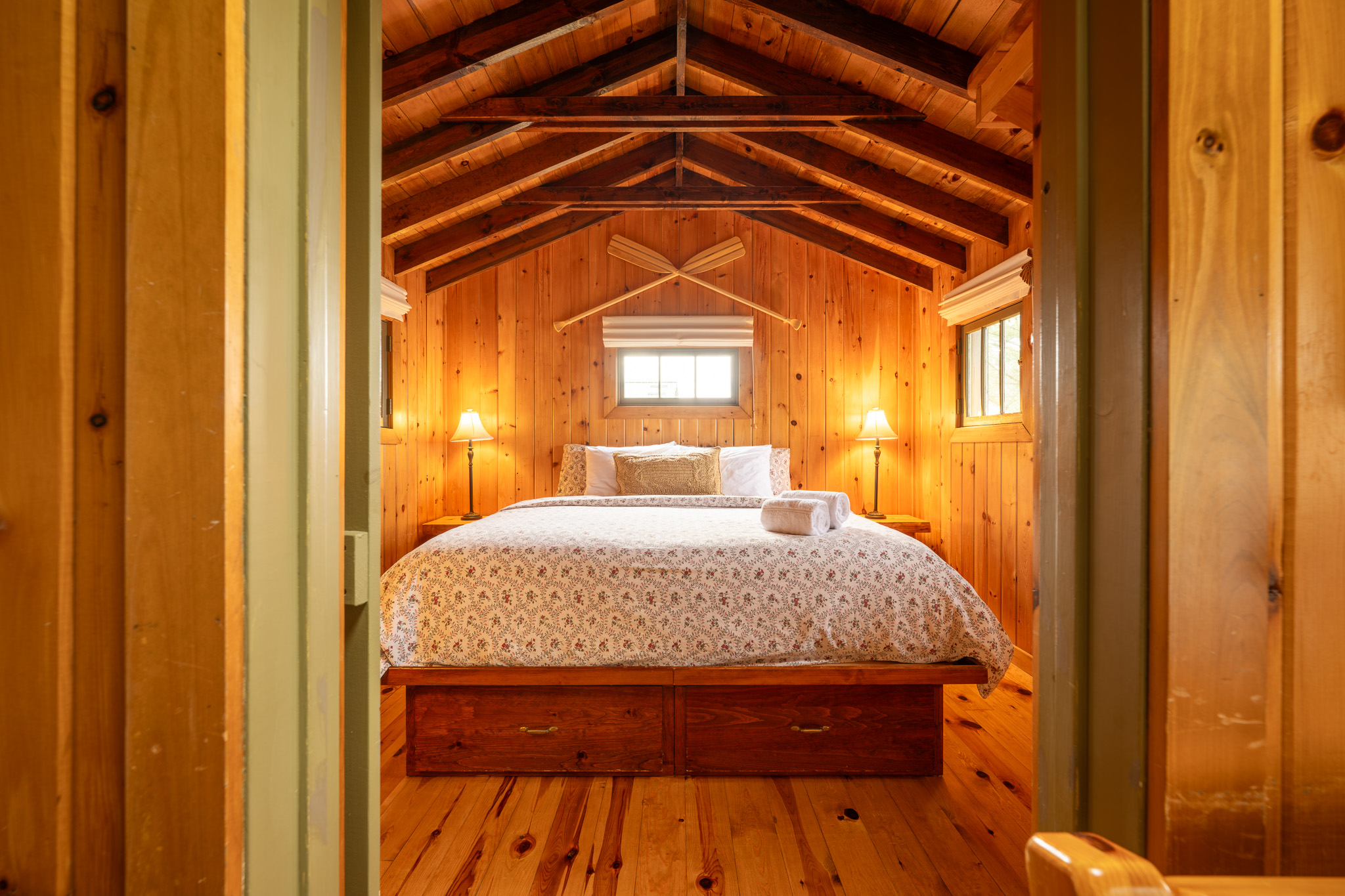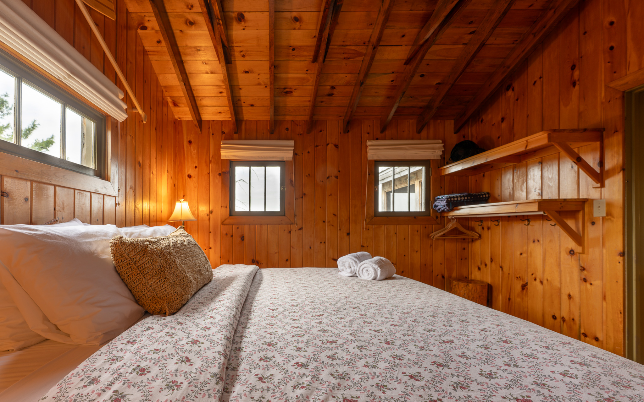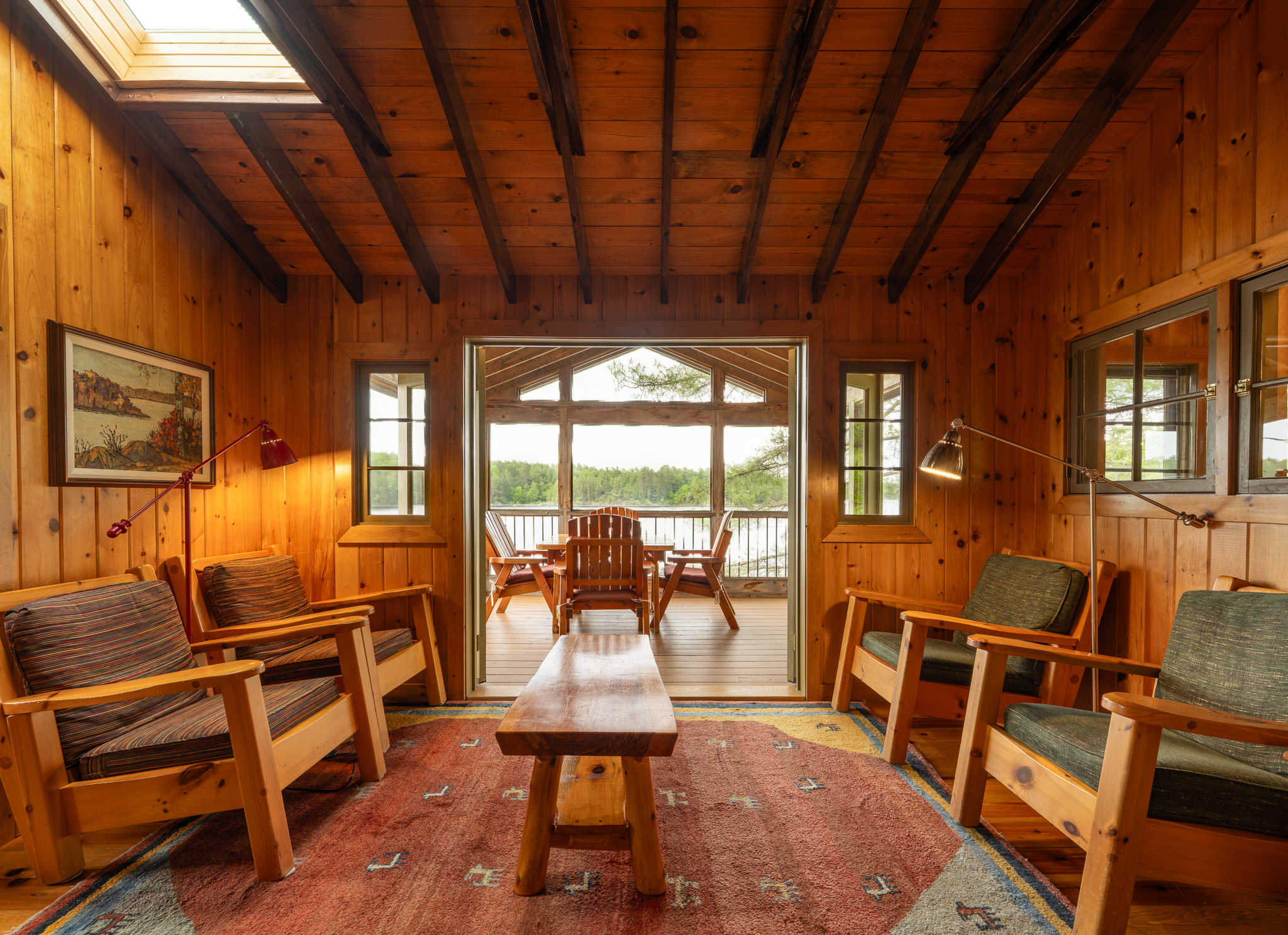 Recollet cottage has a lovely living room with French doors that access a large screened porch that overlooks a large bay. Off the living room are two bedrooms both with king or twin beds, whichever you prefer. Eat your own delights in the custom built kitchen or cook a gourmet picnic ordered from our chef, on the BBQ.