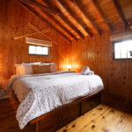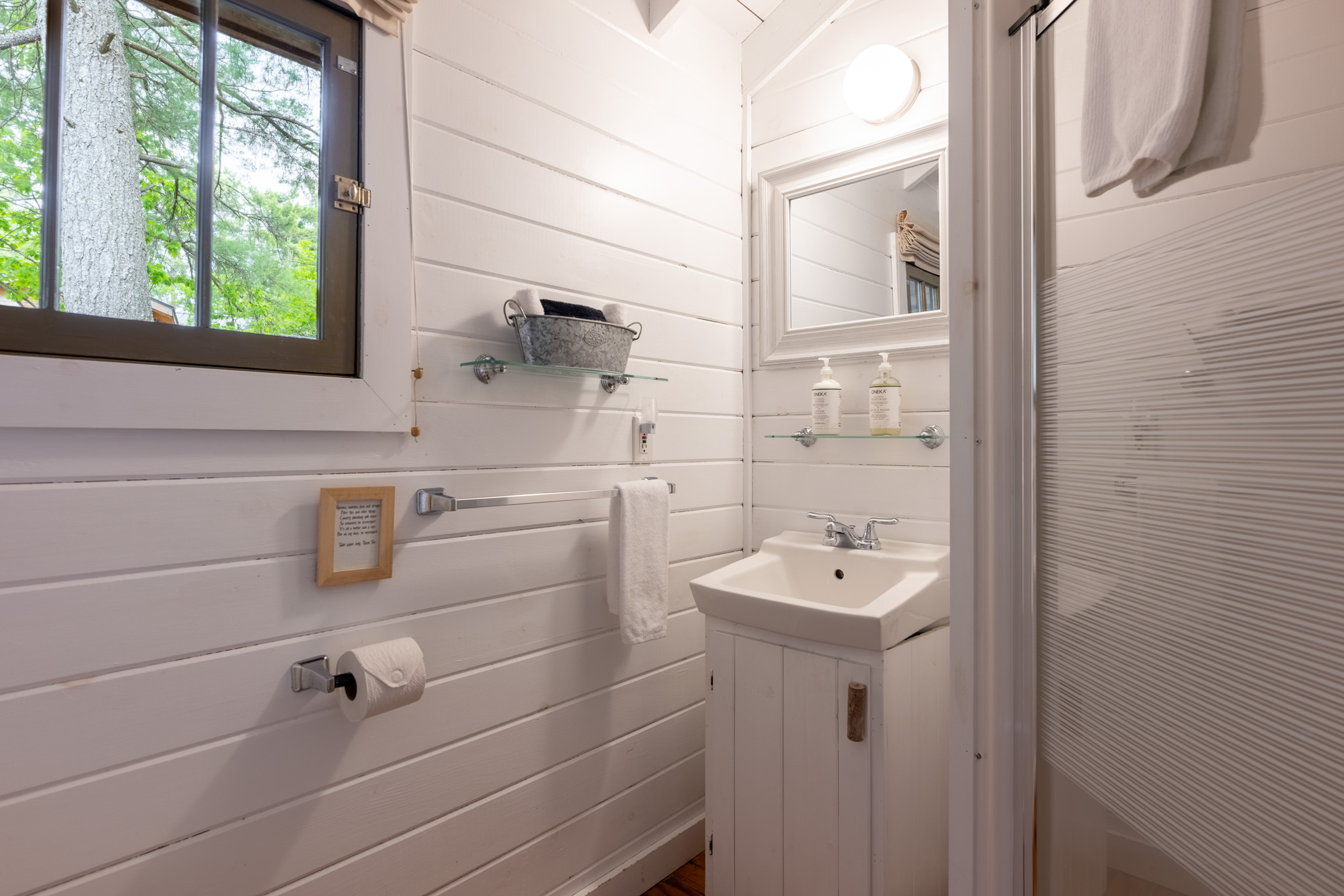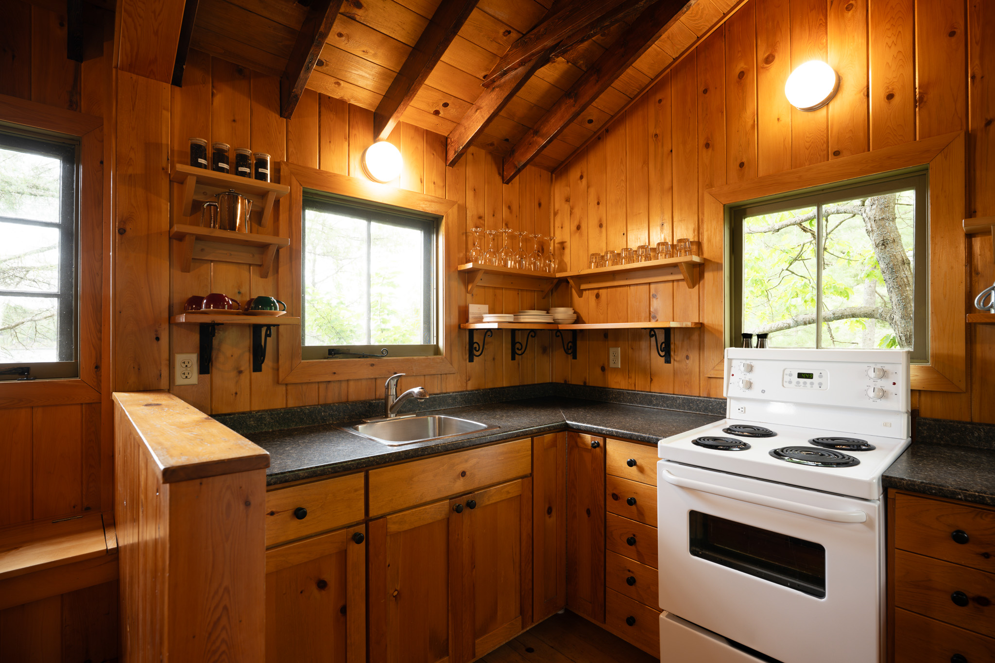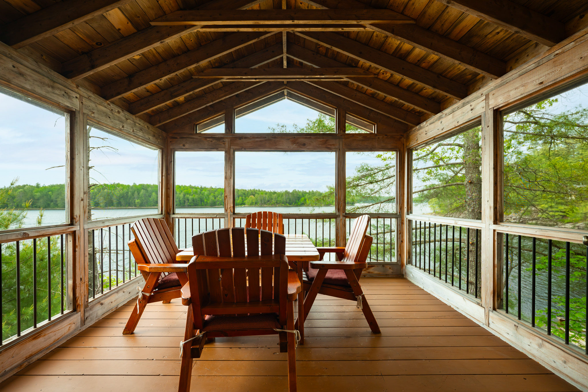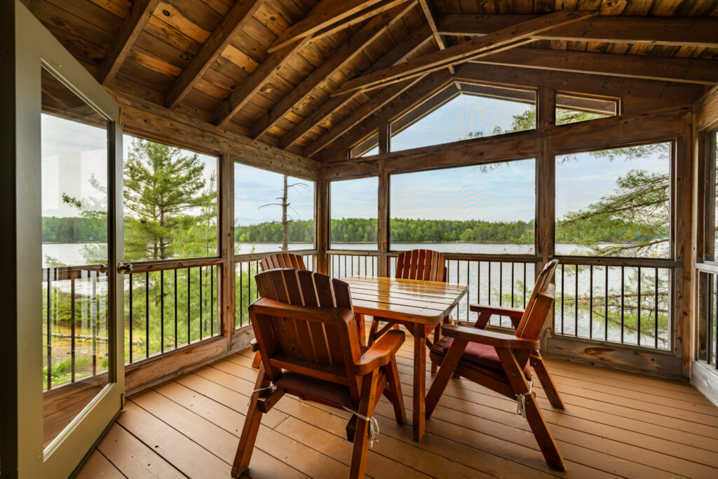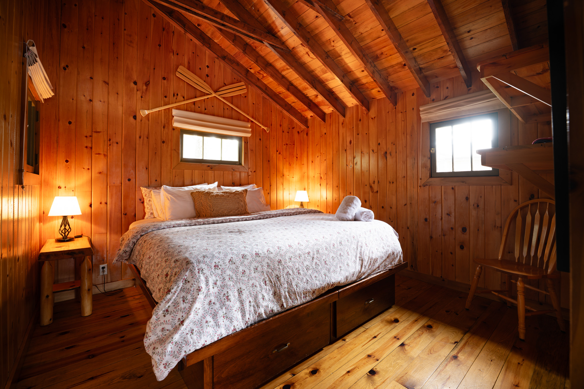 Recollet cottage has a lovely living room with French doors that access a large screened porch that overlooks a large bay. Off the living room are two bedrooms both with king or twin beds, whichever you prefer. Eat your own delights in the custom built kitchen or cook a gourmet picnic ordered from our chef, on the BBQ.